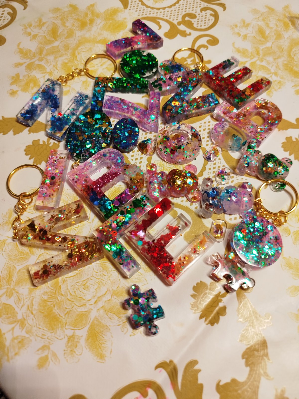 Písmená trblietavé ozdôbky kľúčenky