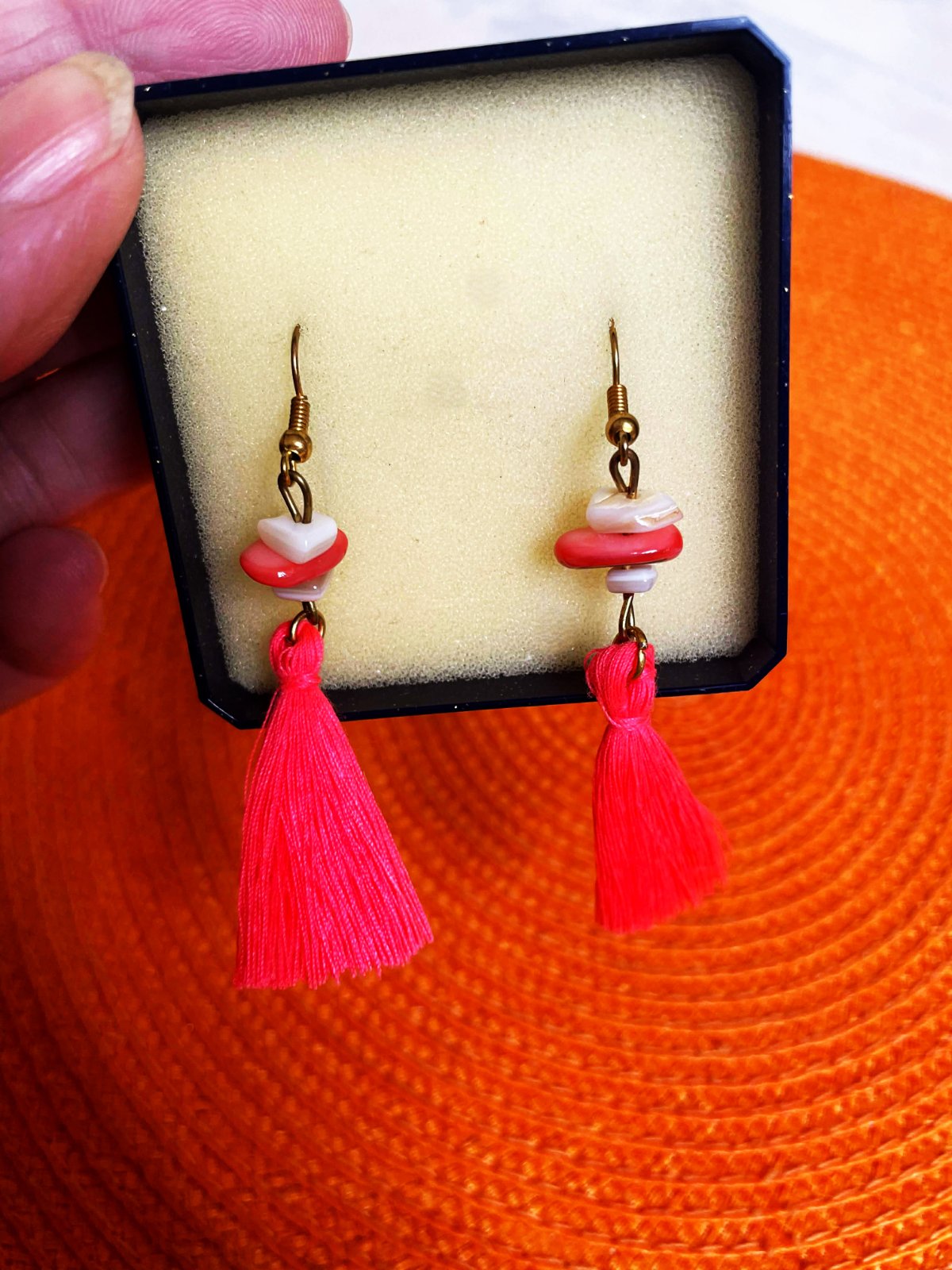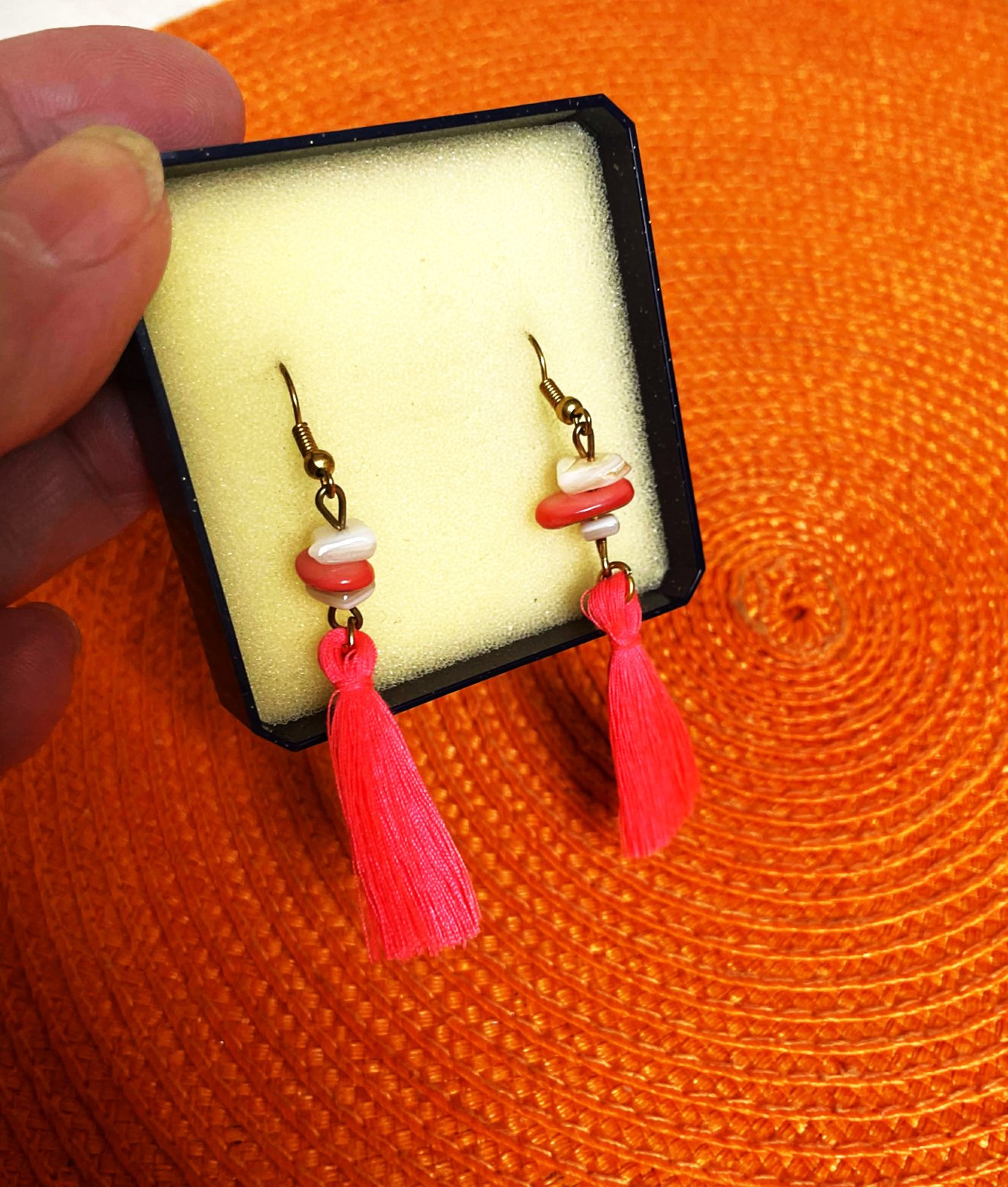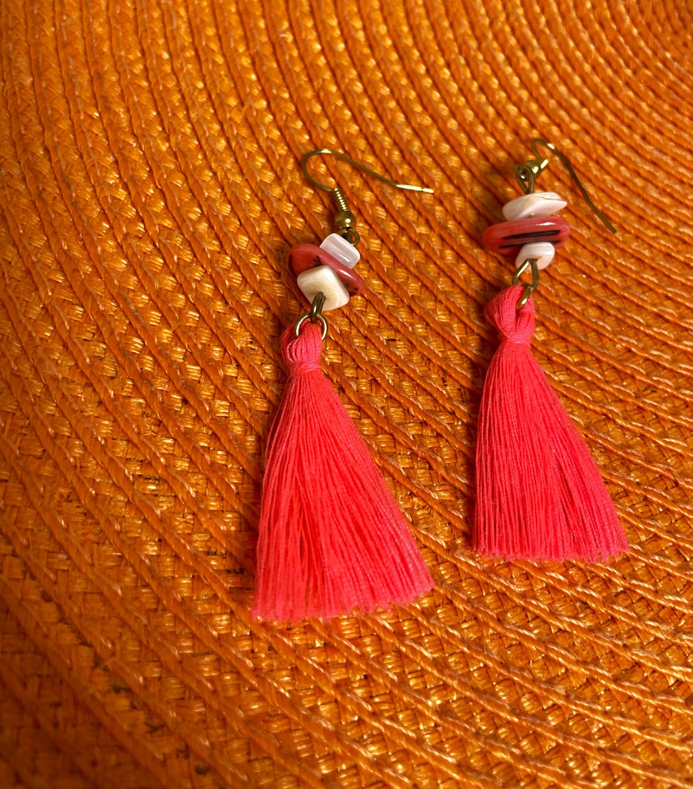 krásne letné pestré - jemne do neónkova trendové náušnice,dlžka : od korálkov dole = 5 cm