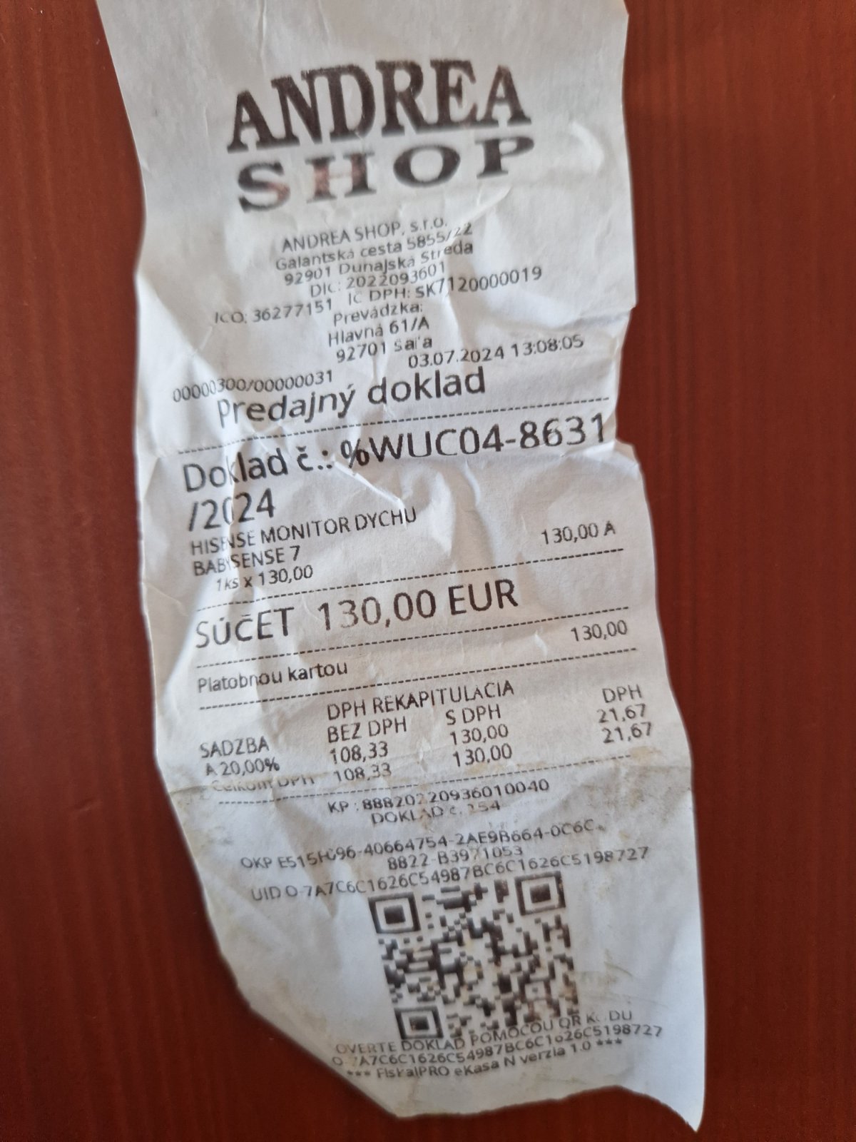 Predam monitor dychu Babysense 1. Osobny odber: Petrzalka alebo Podunajske Biskupice
