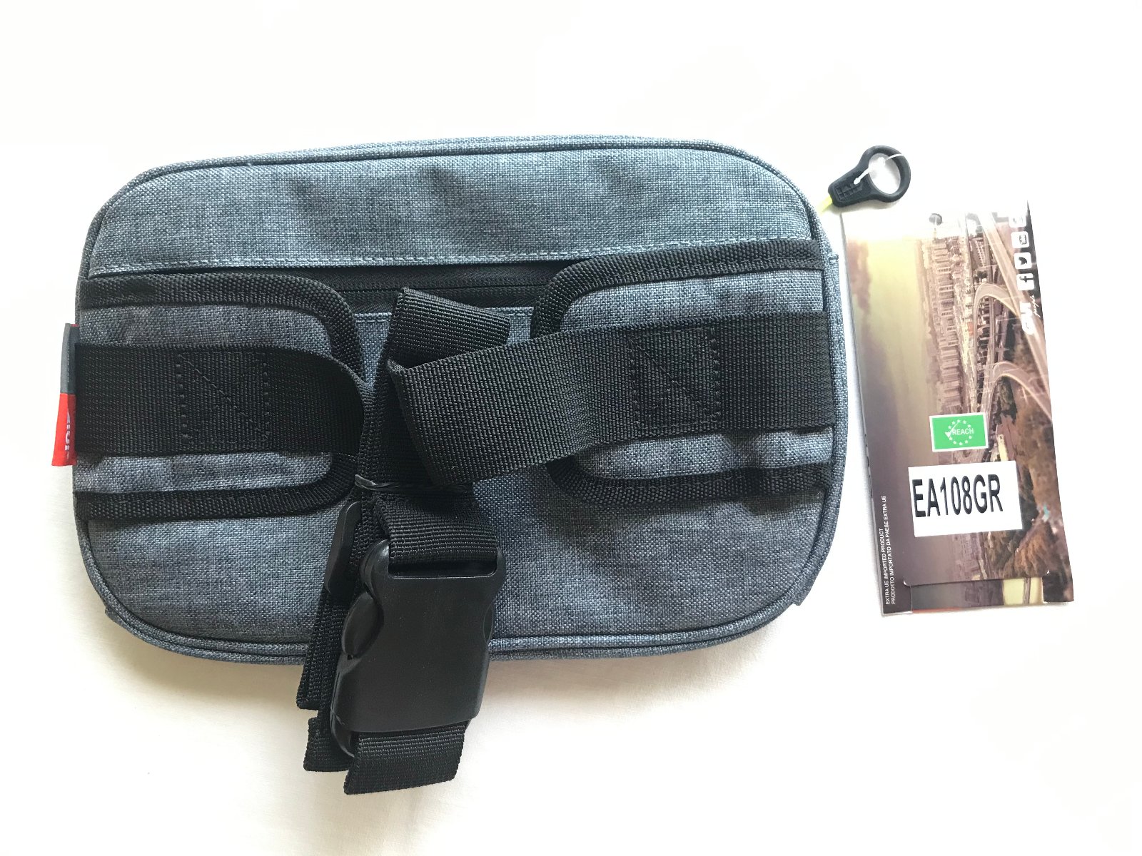 Tmavosivá ľadvinka pre motocyklistov, zn. GIVI. Pevný materiál - laminovaný polyester. Rifľový vzhľad. 2 priehradky vpredu na zips - na objemnejšie veci, vzadu 1 priehradka na zips - napr. na doklady/peniaze. Nastaviteľný popruh. Reflexné prvky. Rozmery: 26x17x3-7cm. Mám 2 ks. Cena je za 1 ks.
