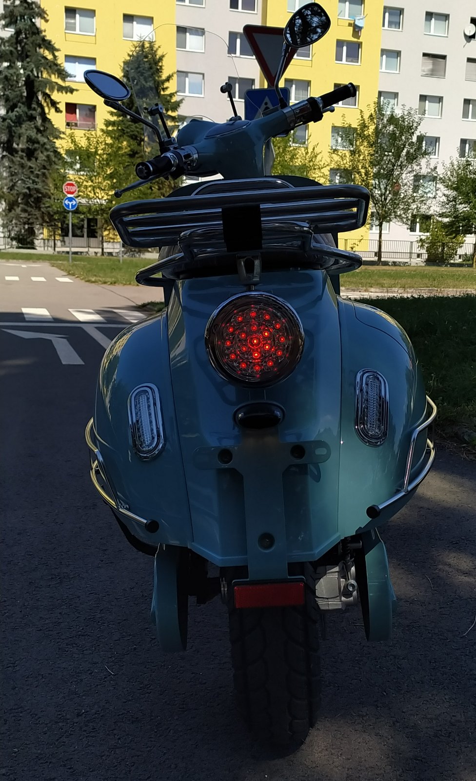 skúter je prihlásený na dop. inšpektorát, má kontrolu originality, osvedčenie I a II a evidečné číslo.