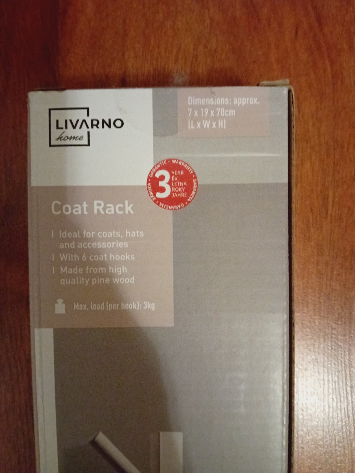 Vešiak kupovaný v Lidl. Cena 8 eur plus poštovné. Poštovné ako balík na poštu 3,90eur.