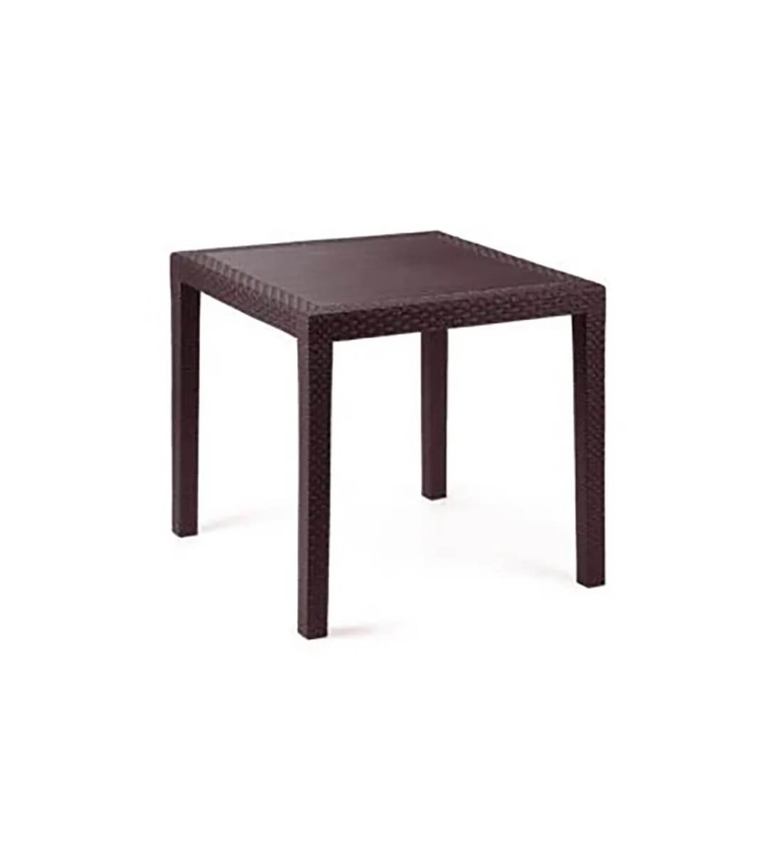 Hranaté nohy stola aj okraj hornej dosky sú z ratanového výpletu tmavohnedej farby. Vnútorná časť hornej dosky je hladká s jemným prúžkom. V prípade silného znečistenia ľahko umyjete tlakovou umývačkou.