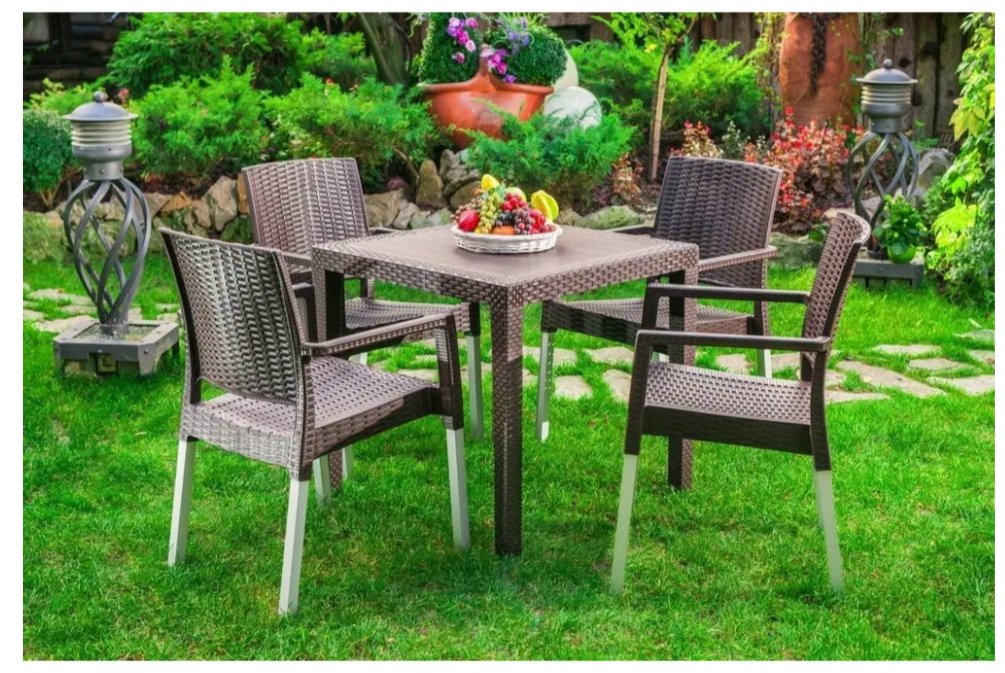 Krásny a kvalitne spracovaný stôl a stoličky z polyratanu sú skvelým doplnkom do záhrady, na terasy aj do vnútorných priestorov. Vynikajú kvalitným spracovaním, pevnosťou a nepotrebujú takmer žiadnu údržbu. Vhodné pre vnútorné i vonkajšie použitie.