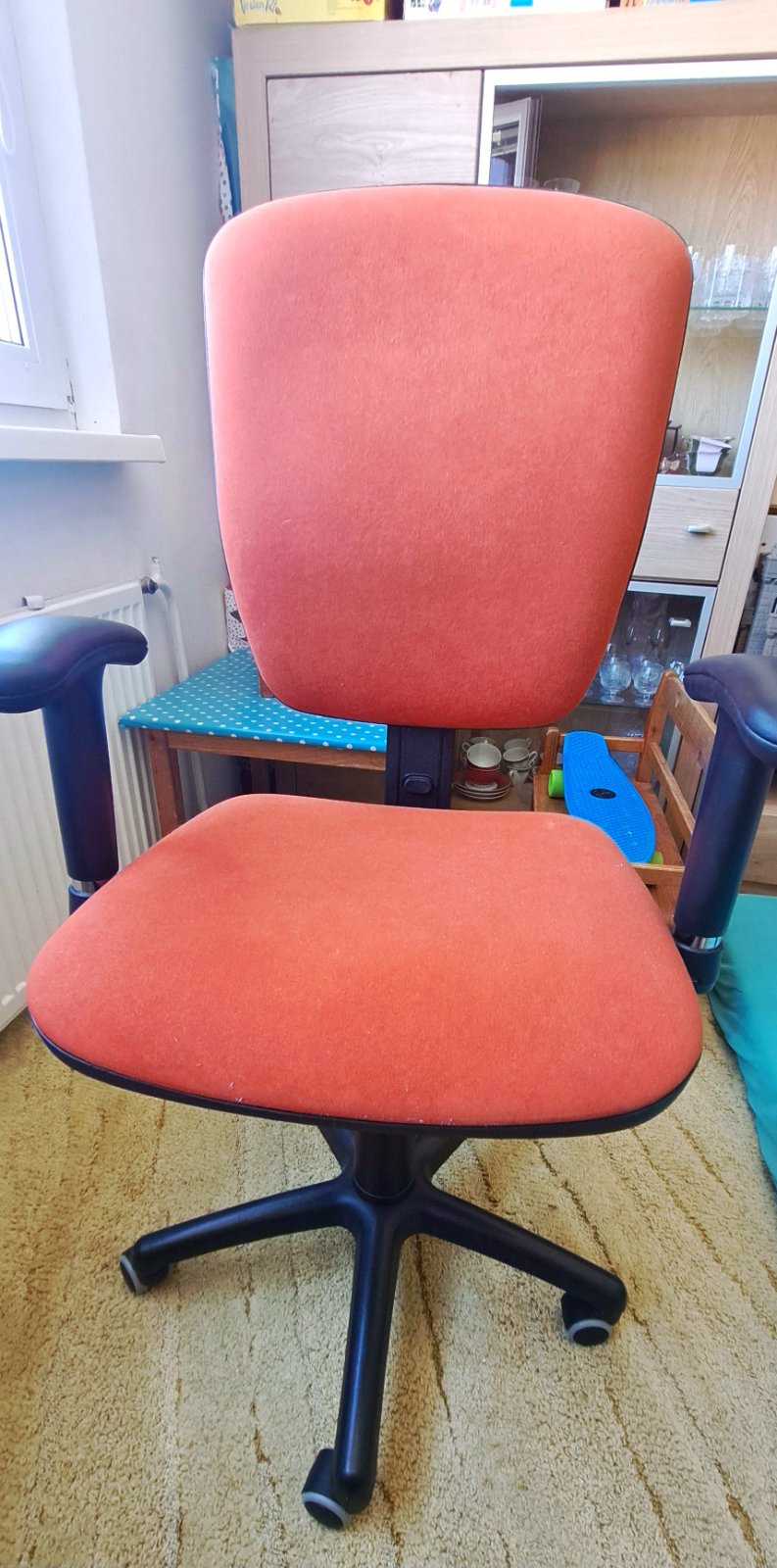 Posunieme kancelársku stoličku, pohodlná, polohovateľná. Pôvodná cena 130€.