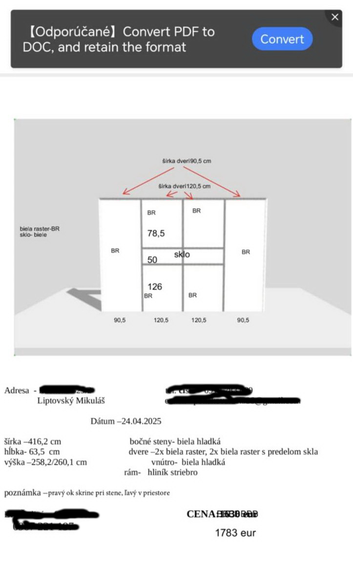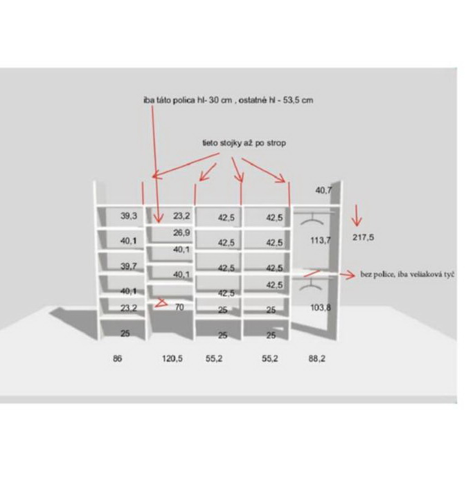 Ponúkame skriňu, ktorú si zdemontujete a odveziete Vy sami. Ocenená na sumu 1783€. Šírka 416,2 cm, výška 258,2 cm, hĺbka 63,5 cm.