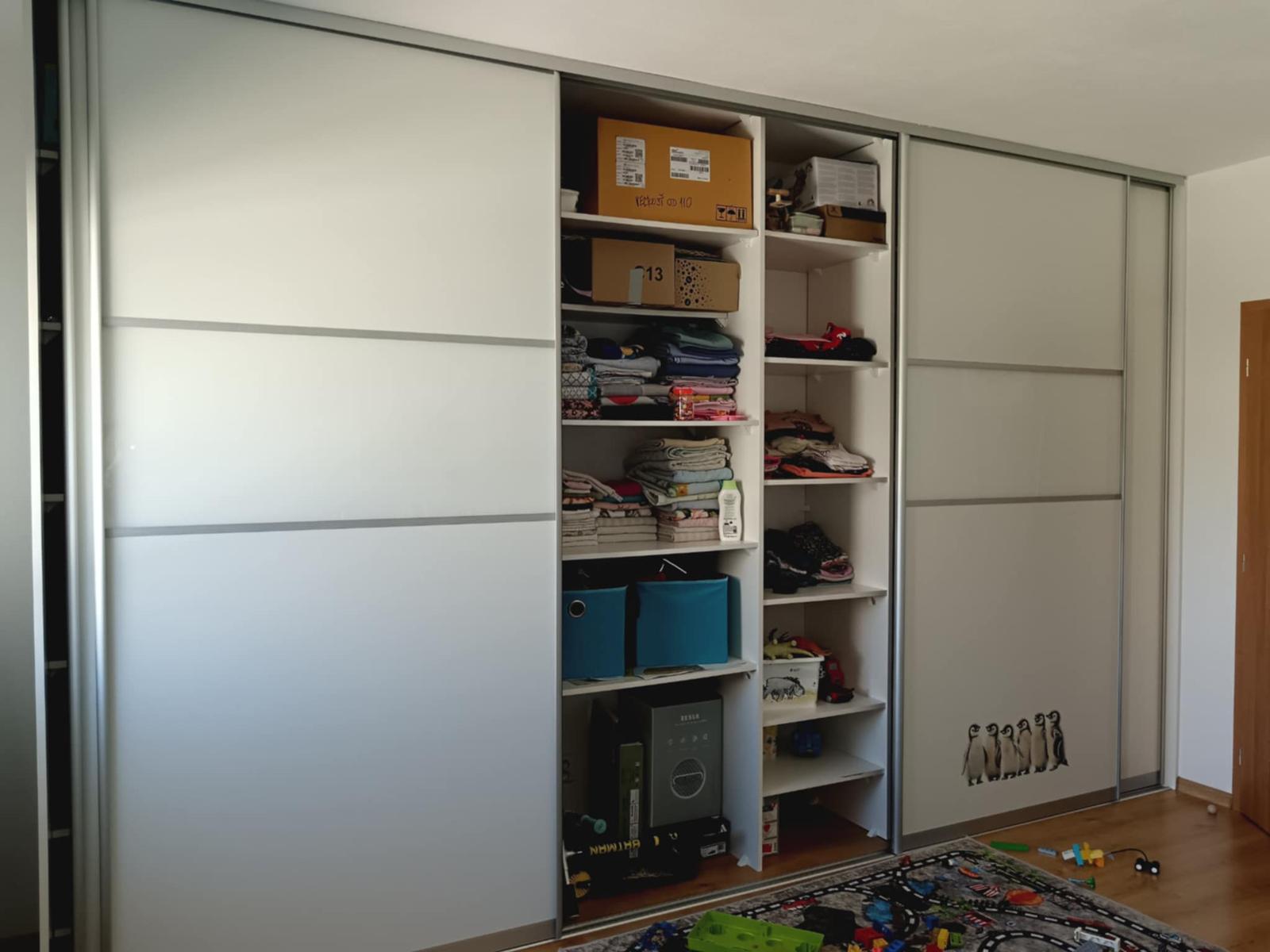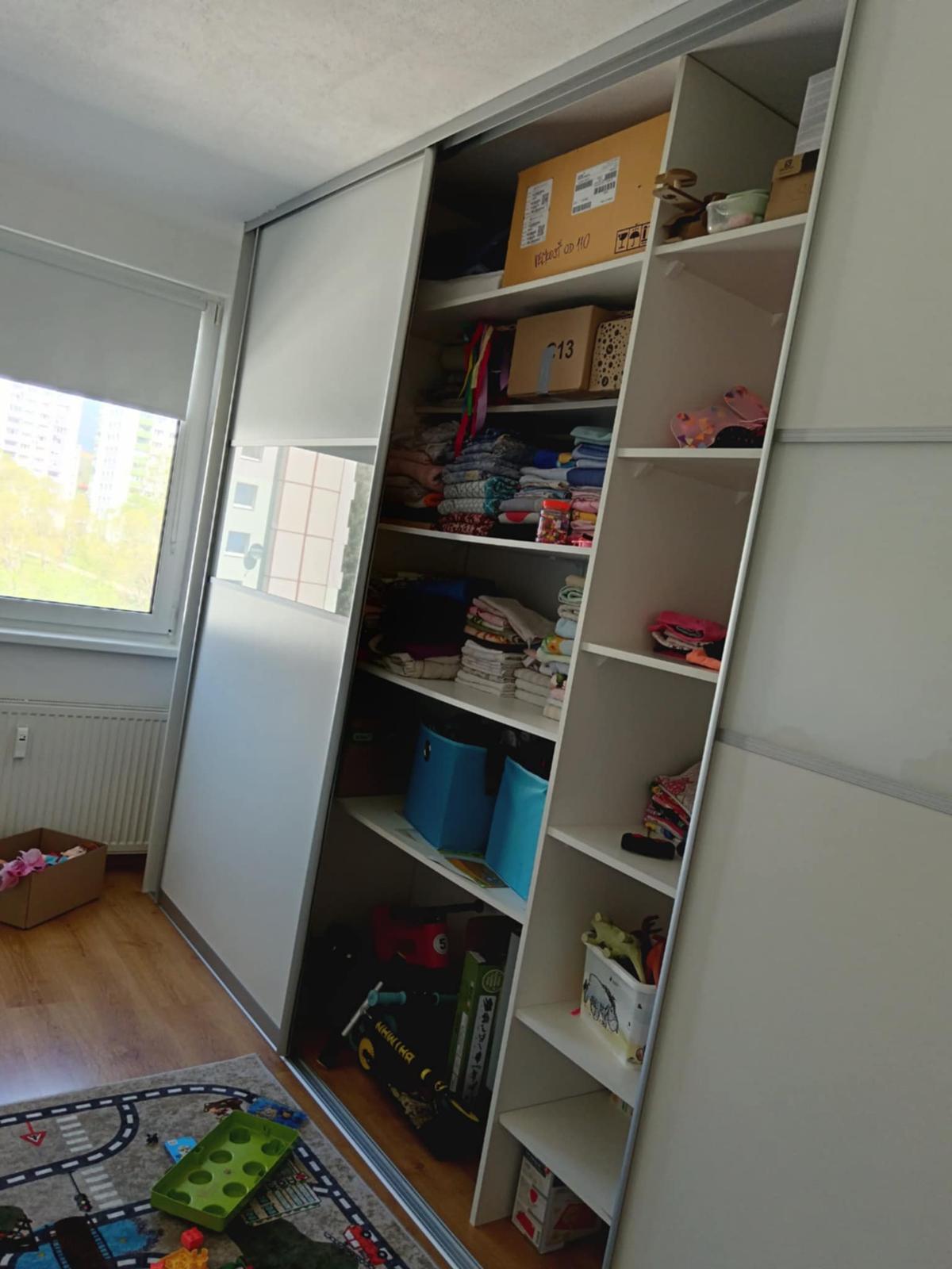 Vstavaná šatníková skriňa, používaná, nepoškodená.