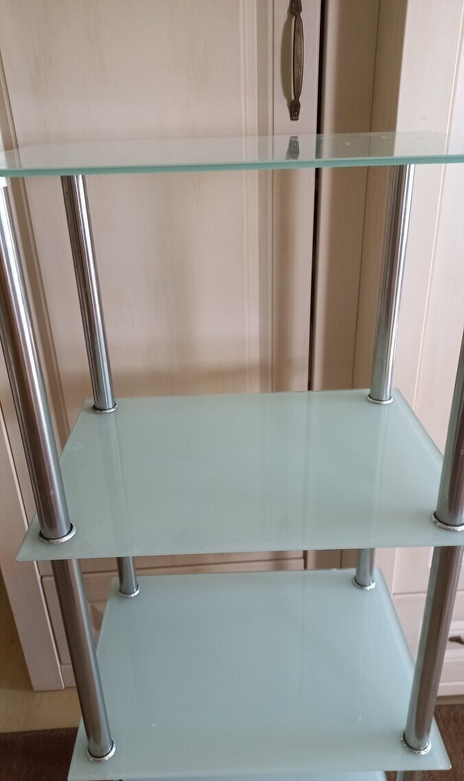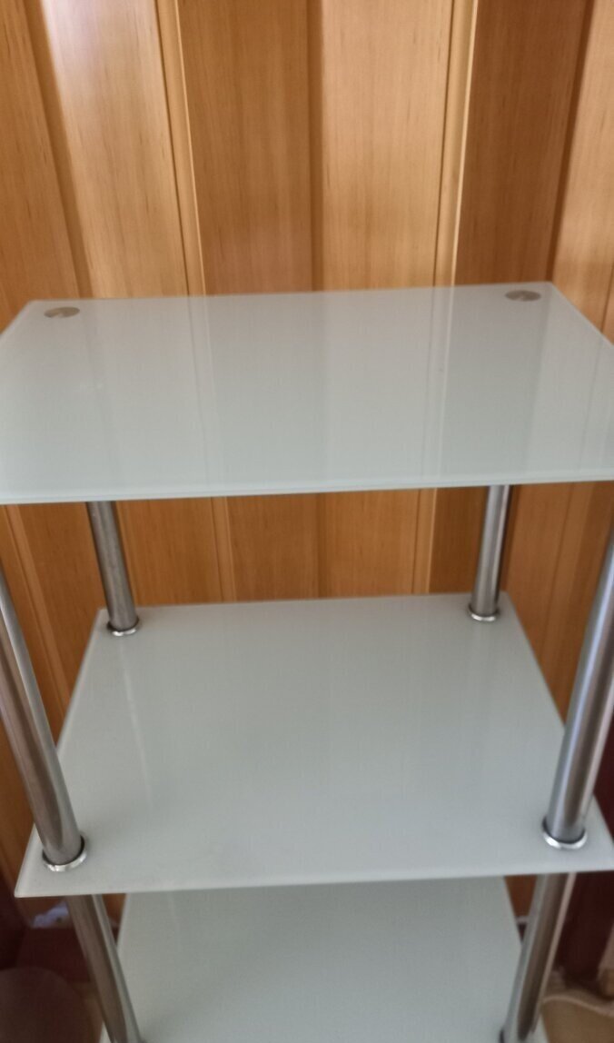 Pekná, kvalitná sklenená polica-/matné sklo/. Vhodná do kúpeľne, wC, kuchyne...Rozmery 40x30x102.. Má 4 poličky