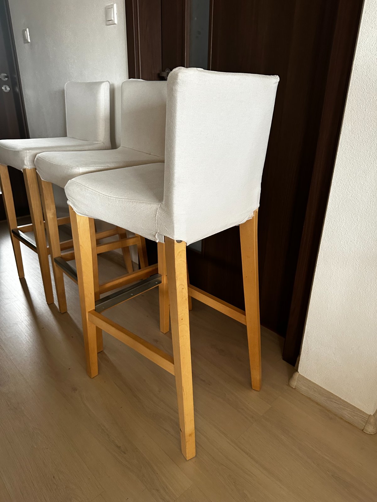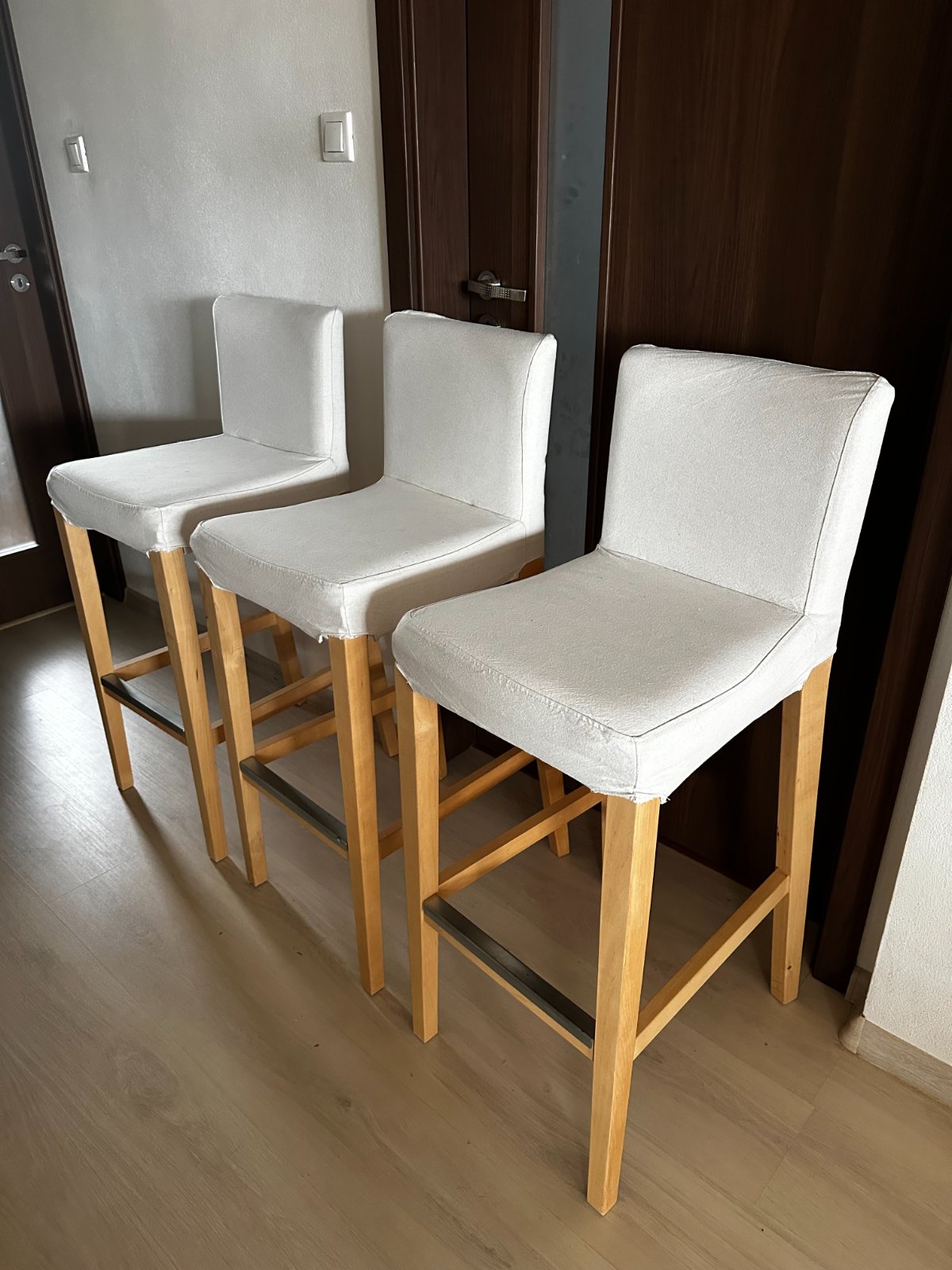 Predám tri barové stoličky v smotanovej farbe, v peknom stave, nevysedené, boli skôr len kvôli dizajnu... poťah snímateľný, prateľný. Kupované v IKEI. 10eur/kus.