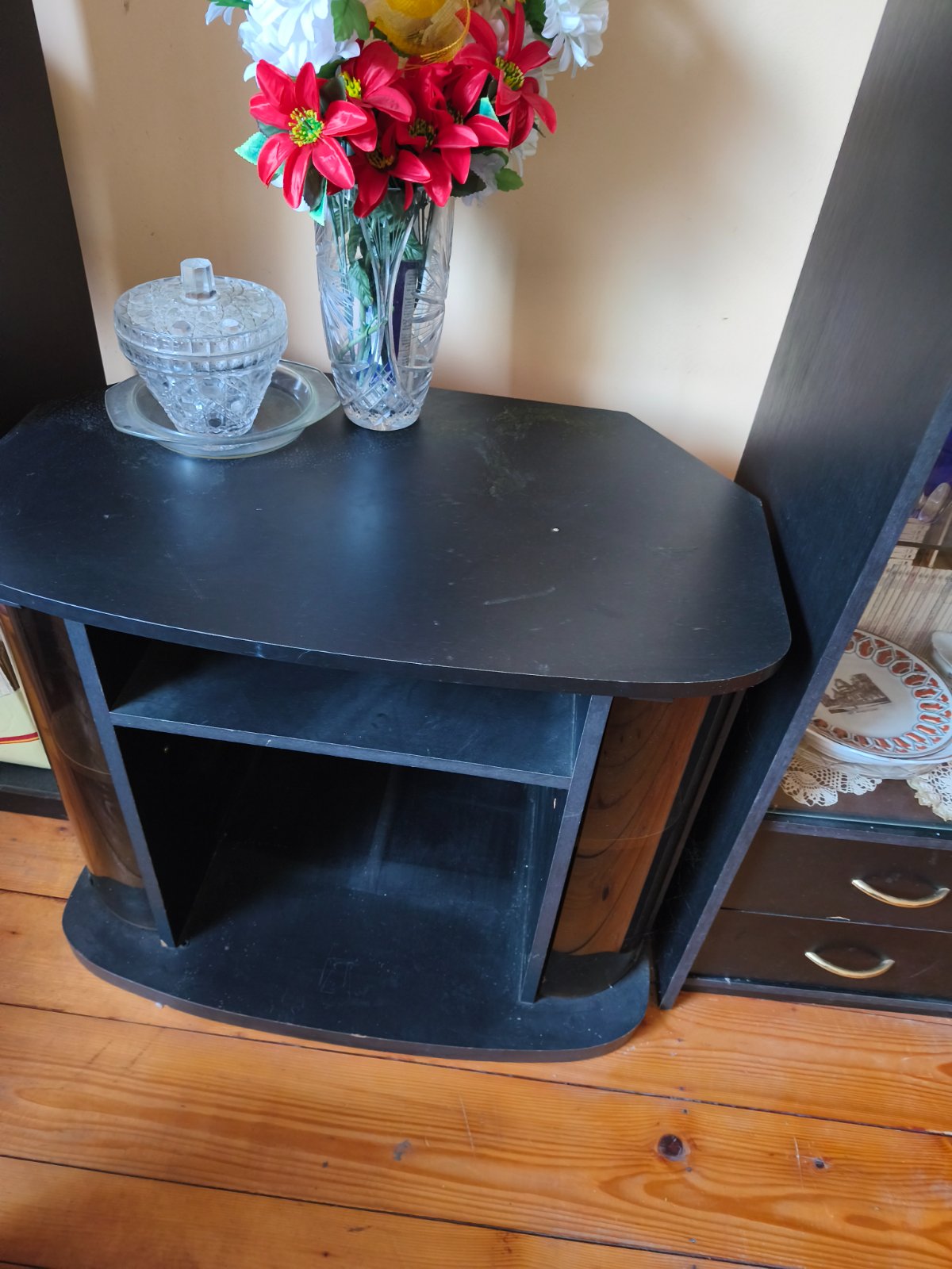 Predám nepoškodený stolík pod TV používaný veľmi krátko, top stav. Výška 58cm, šírka v najširšom mieste 85cm.