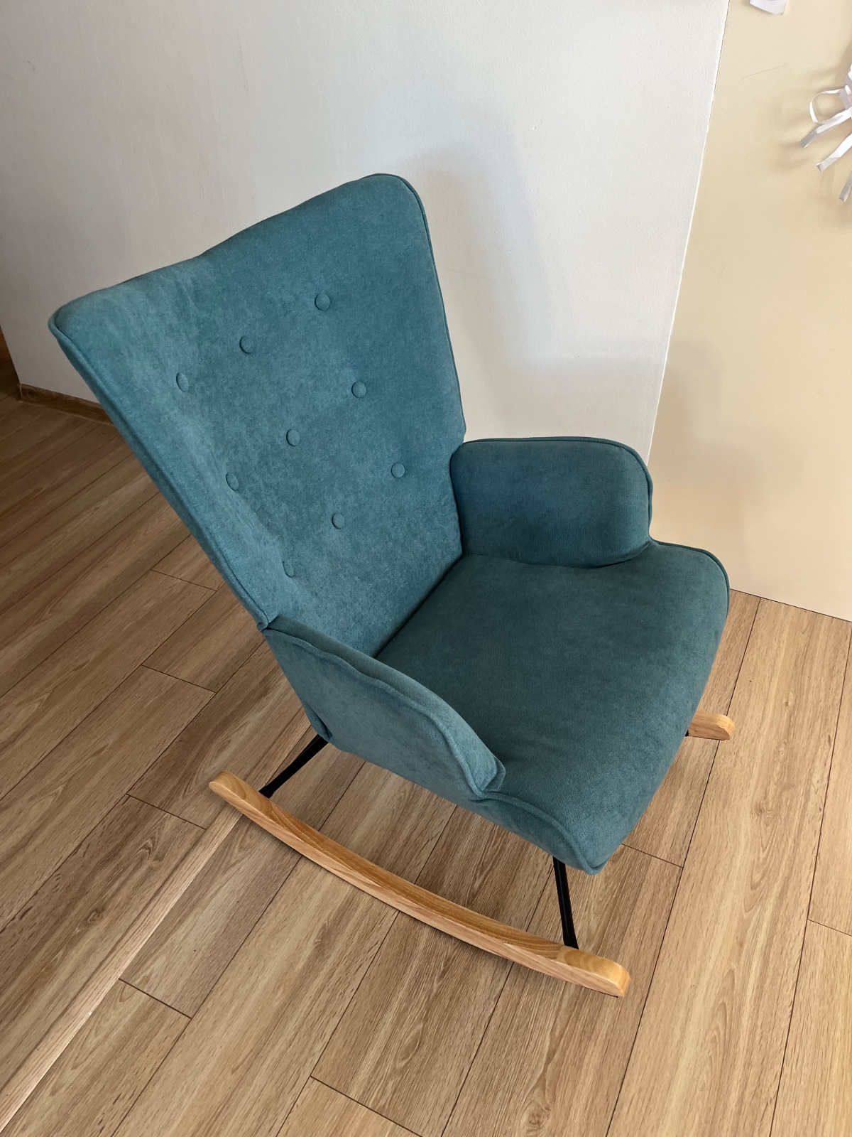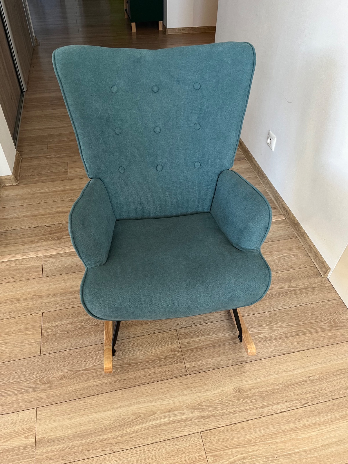 Nové hojdacie kreslo zelenej farby kupované od Sconto za 122,- €
