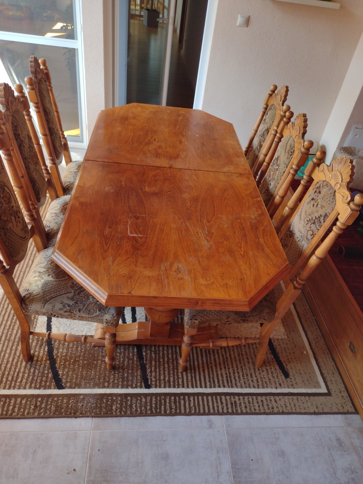 Je rozkladací180 CM bez rozkladu, 240 CM s rozkladom so 6 stoličkami.