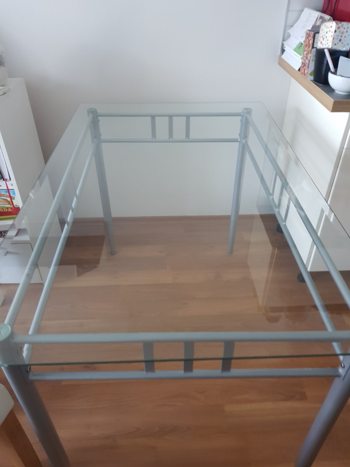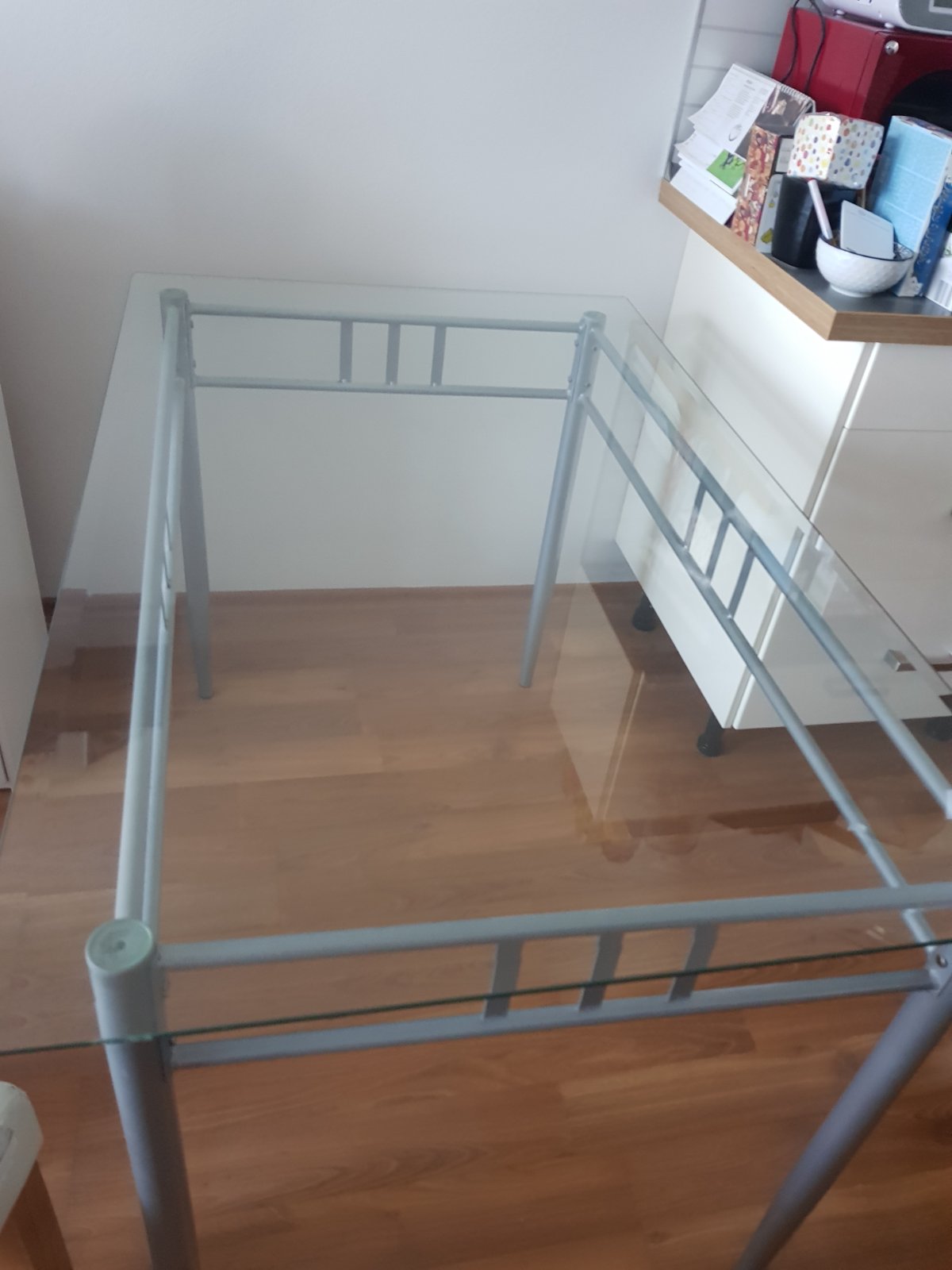 Predám jedálenský stôl. Má dosku zo skla a konštrukcia je kovová. Rozmery sú šírka 76 cm, dĺžka 120 cm a výška 76 cm. Nie je poškodeny v zmysle nejakych prasklín, vzdy bol na nom obrus stredovy alebo na cely povrch. Pri rychlom jednani dohoda na cene možná.