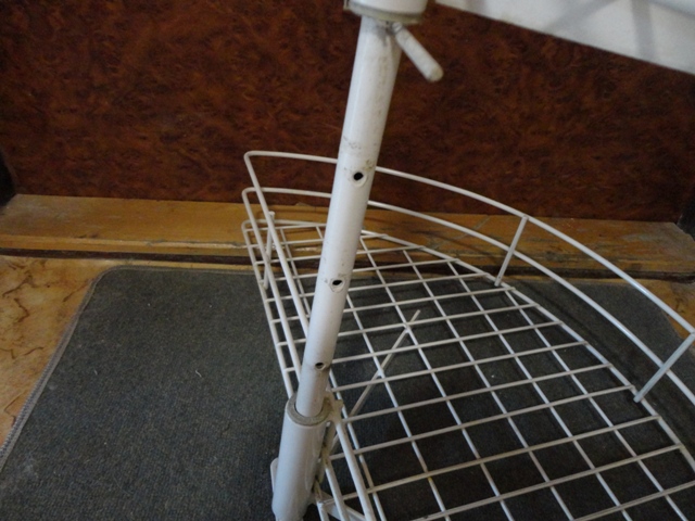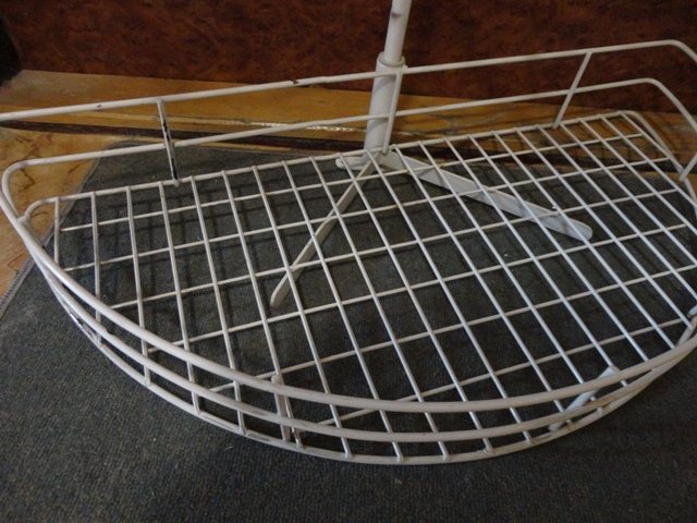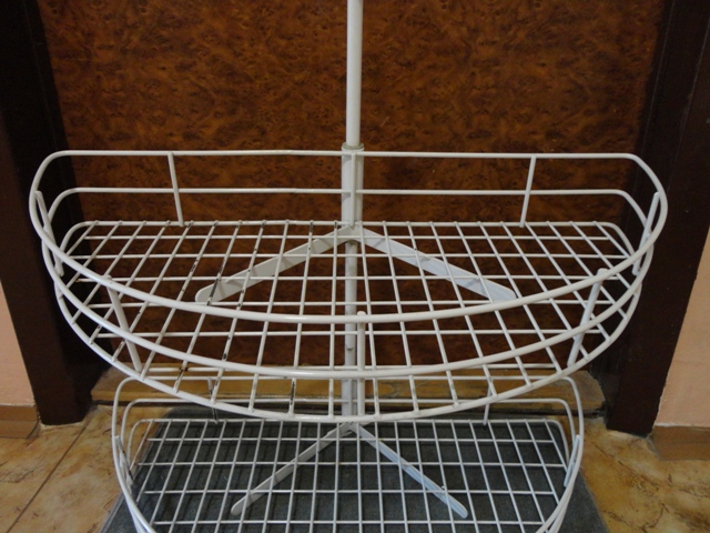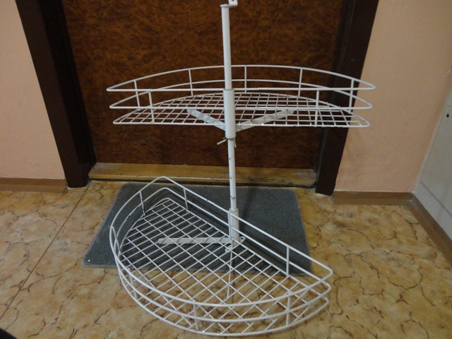 Predám KOVOVÉ POLKRUHY do rohovej kuchynskej linky – kovové polkruhy do spodnej rohovej kuchynskej skrinky s dvoma policami, farba – biela, nadstaviteľná výška, otočitelné o 3600.
