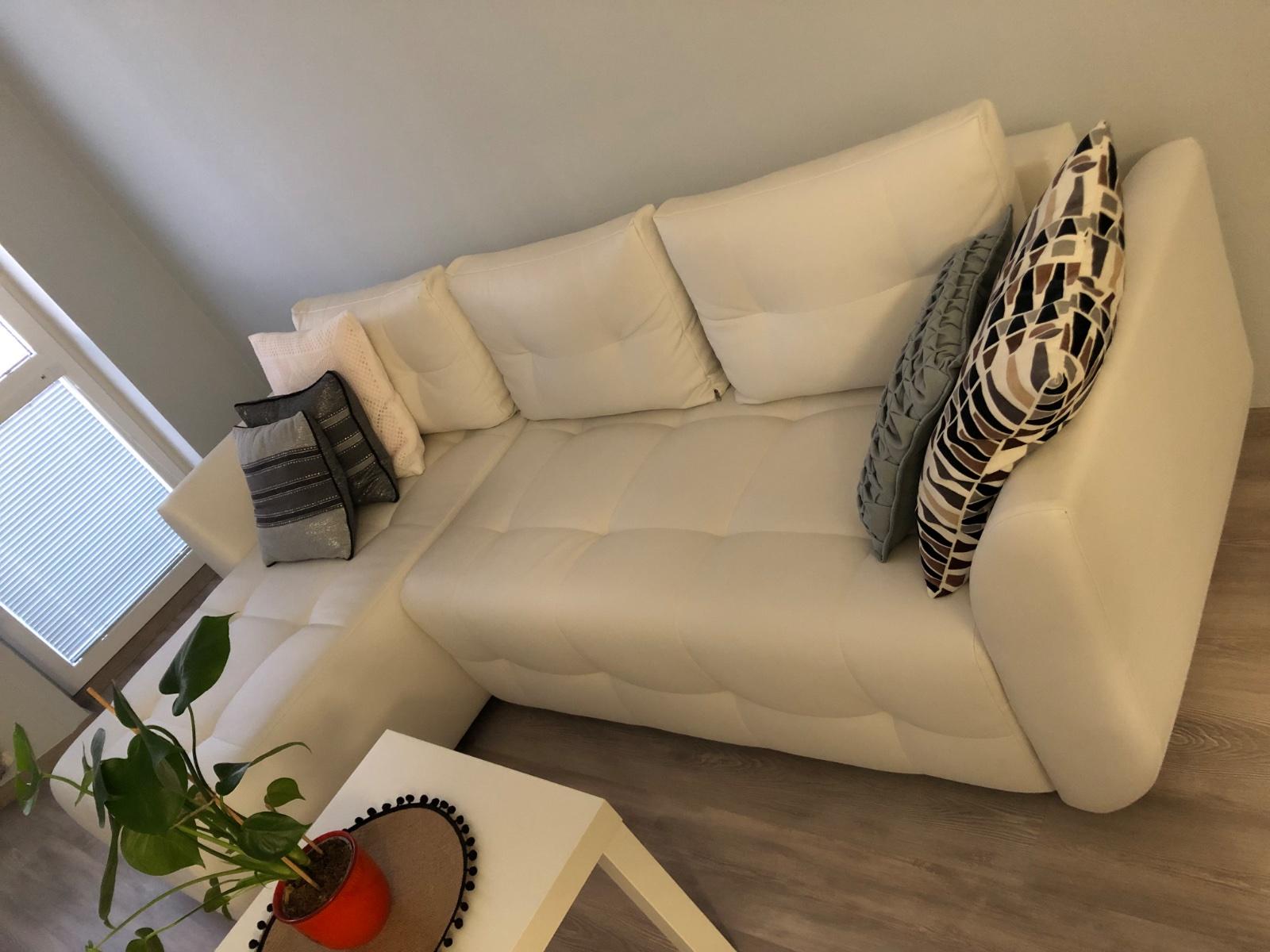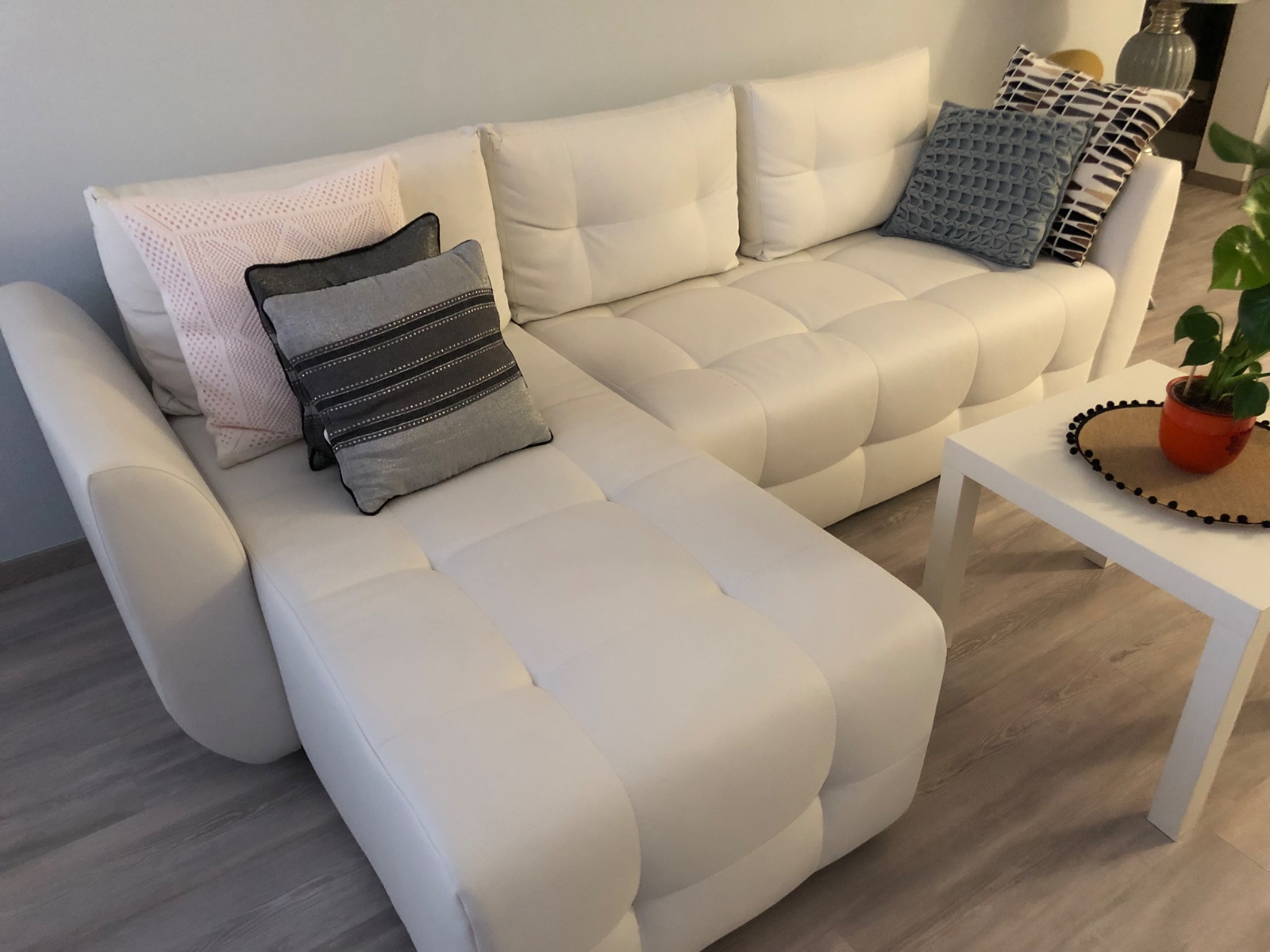 Predám rozkladatelnu eko koženú sedačku, kupovaná v 2019, pôvodná cena 379€( bez operných vankúšov , tie som kupovala osobitne , ale predám aj s nimi.) Sedačka ma úložný priestor a vie sa rozložiť na posteľ. O sedačku sa vzorne starám , nemá žiadne známky poškodenia , okrem jednej - uvedené na fotke. Celková šírka je 232cm, sedacka je tvrdá , nie mäkká. Len osobný odber Bratislava, kto si ju môže odviesť. Dôvod predaja - chcela by som kúpiť menšiu sedačku.