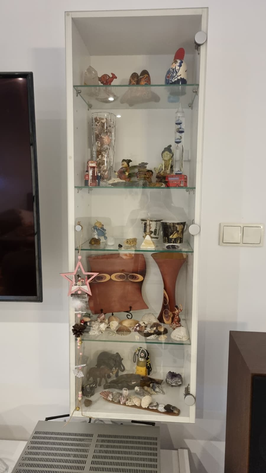 Predám vitrínu/závesnú skrinku. Sklenené predné dvierka, sklenené poličky. (bez predmetov vo vnútri) Rozmery (Š × H × V): 40 × 28 × 122 cm.Vitrína je stabilná a plne funkčná. Osobný odber Zálesie, okr. Senec.