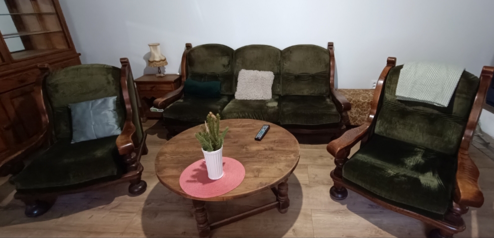 Predám sedaciu súpravu 3+1+1 zelený zamat, vhodná na chalupu, chatu alebo lesnícky salón. Je naozaj pevná, robustná. Nachádza sa v B. Stiavnici. Treba si zohnať odvoz aj s pomocou.