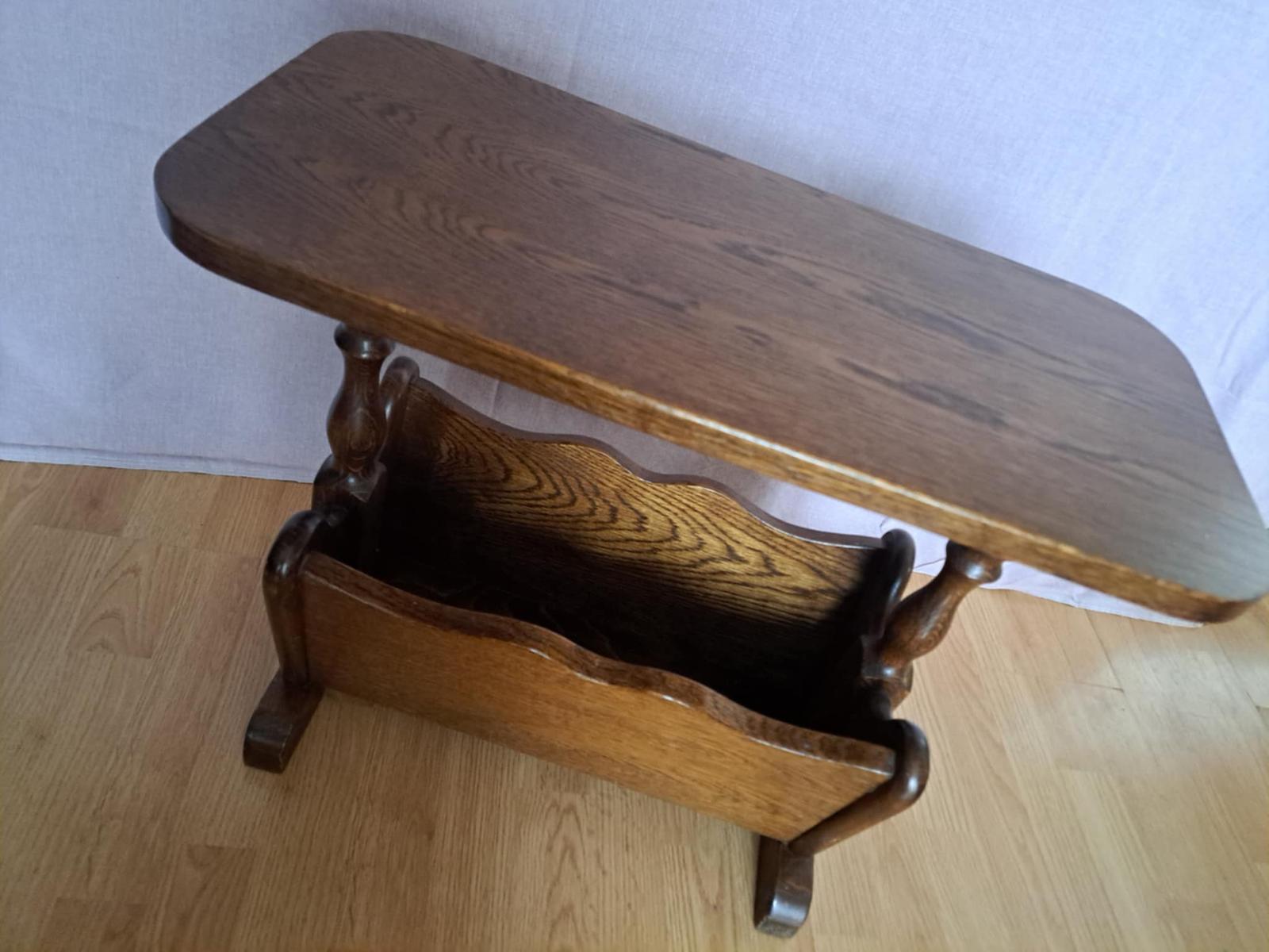 Masívny, konferenčný stolík, rustikálny štýl, vrch viď. foto fľaky. výška 135, šírka 85 a výška 55 cm. Cena dohodou