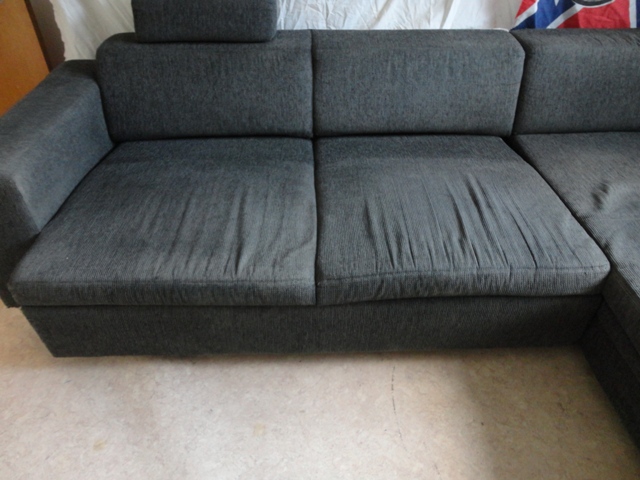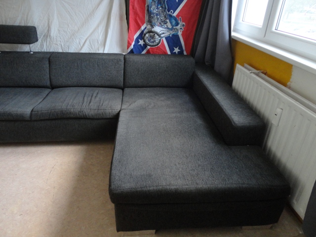 Predám ROZKLADACIU POHOVKU – kvalitná masívna rozkladacia sedačka, pevná konštrukcia, poťah z pevnej tkaniny, tmavo-sivej farby, na jednom operadle nastaviteľná operka na hlavu. Sedačka sa skladá z dvoch kusov, jedna z nich je rozkladaci a tak možno vytvoriť lôžko na spanie.