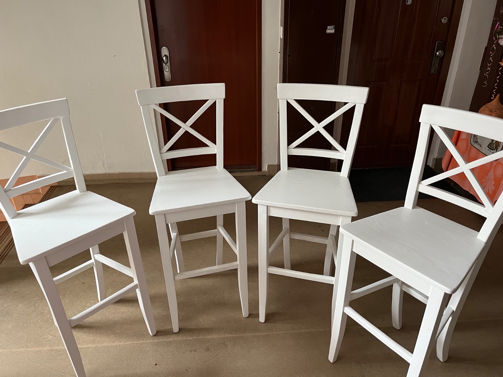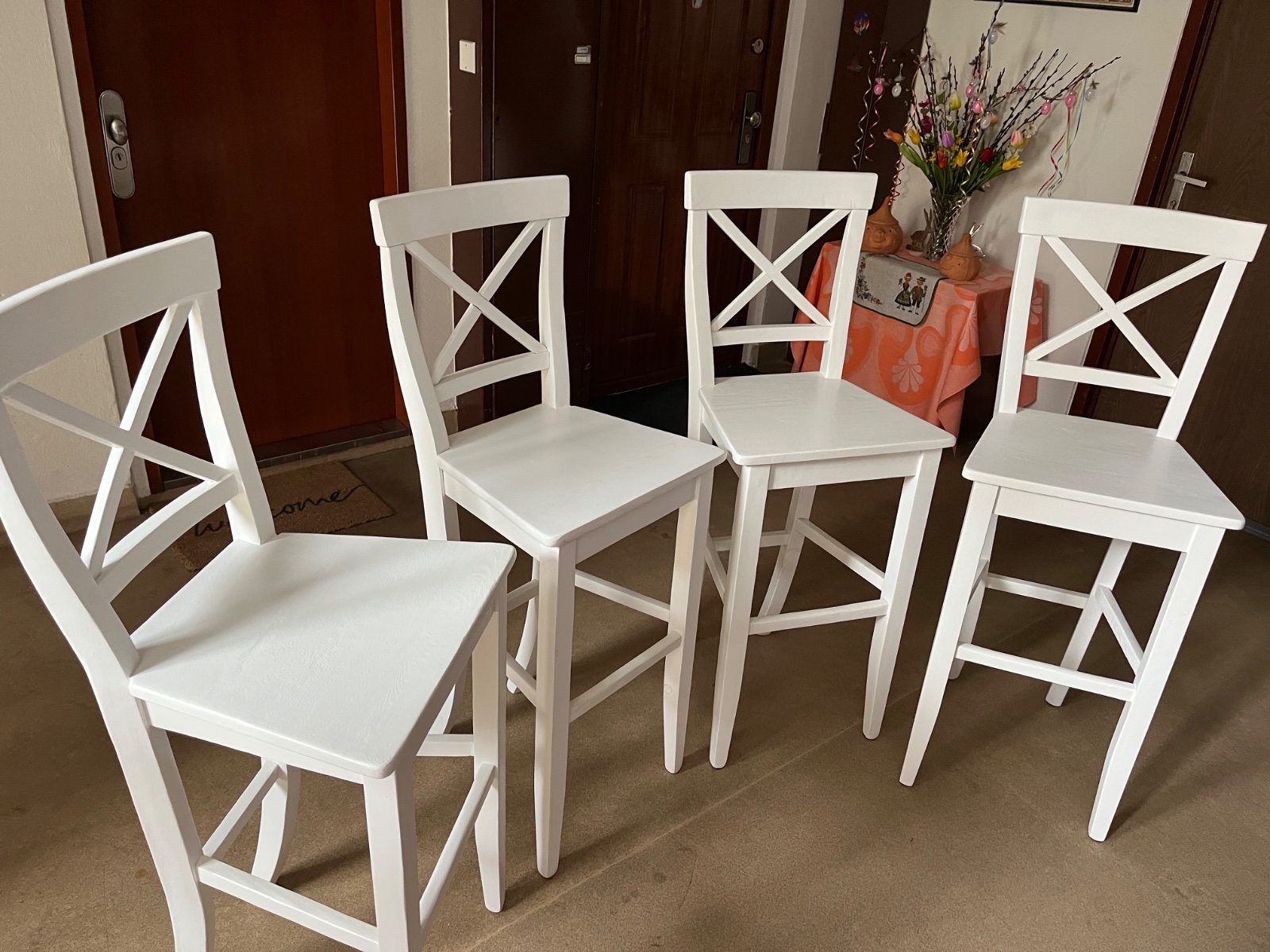 Predám barové stoličky, výška po sedadlo 77 cm, výška s operadlom 120 cm, sedadlo 47x40cm , cena za ks 25€, mám ich 4 ks