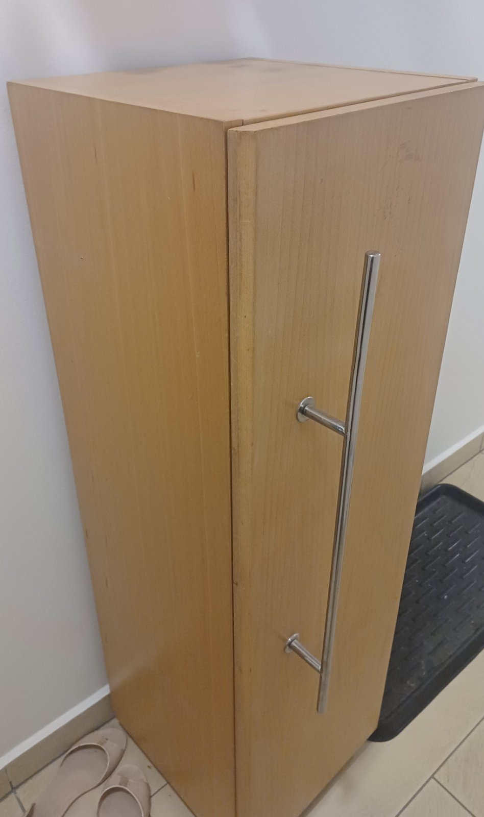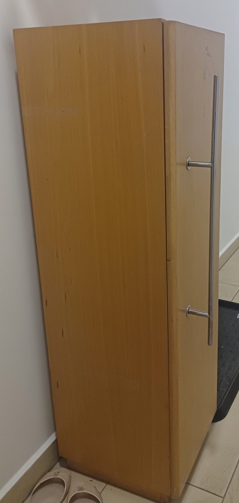 Ponukam pouzivanu skrinku z dreva. Vyska 116, sirka 35, hlbka 35,5 cm. Vnutri ma 2 policky na ulozenie vecí,papierov resp.cohokolvek.