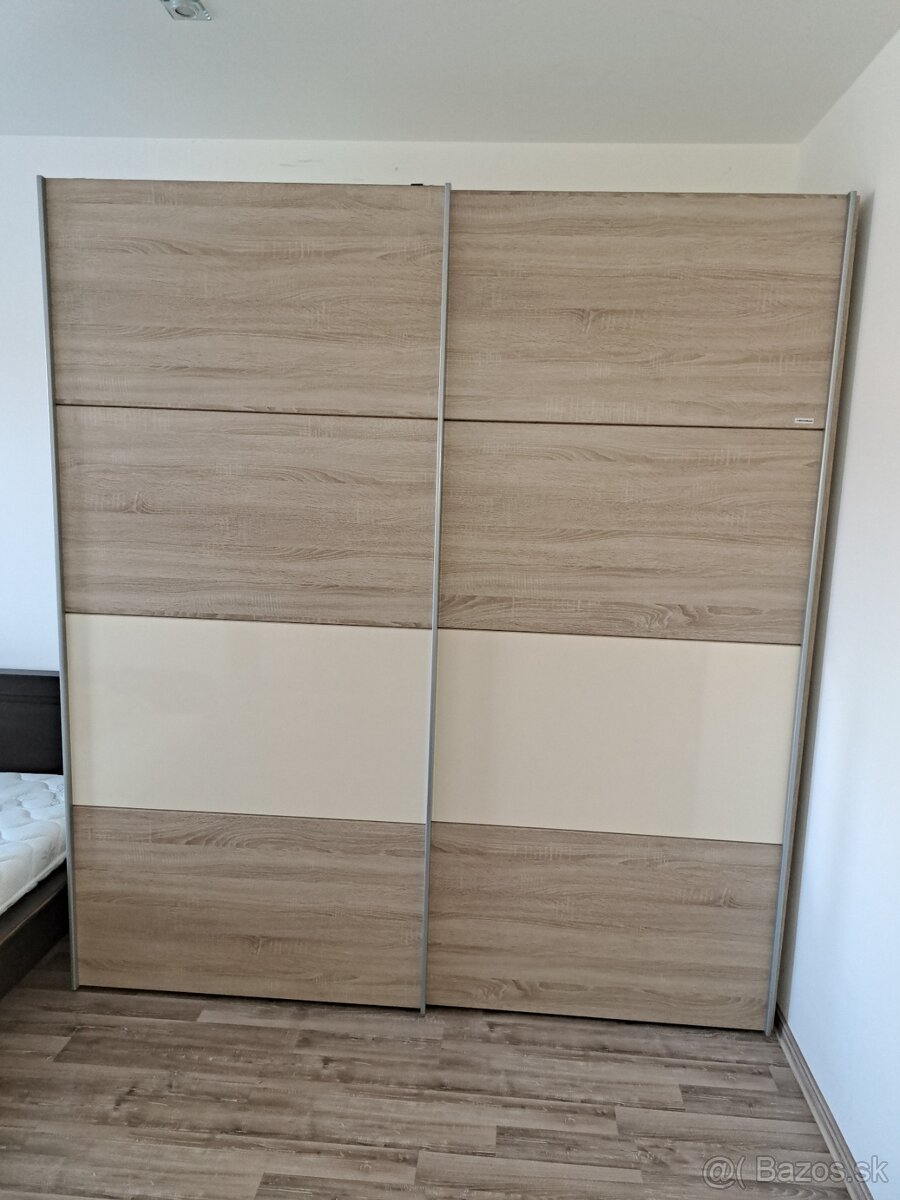 Predám zachovalu satnikovu skriňu Decodom Šírka 202cm, výška 222cm, hĺbka 66cm vo farbe dub bardolino s posuvnými dverami.Možnosť kúpiť aj celú detskú izbu skrina, postel, regal, knihovnicka