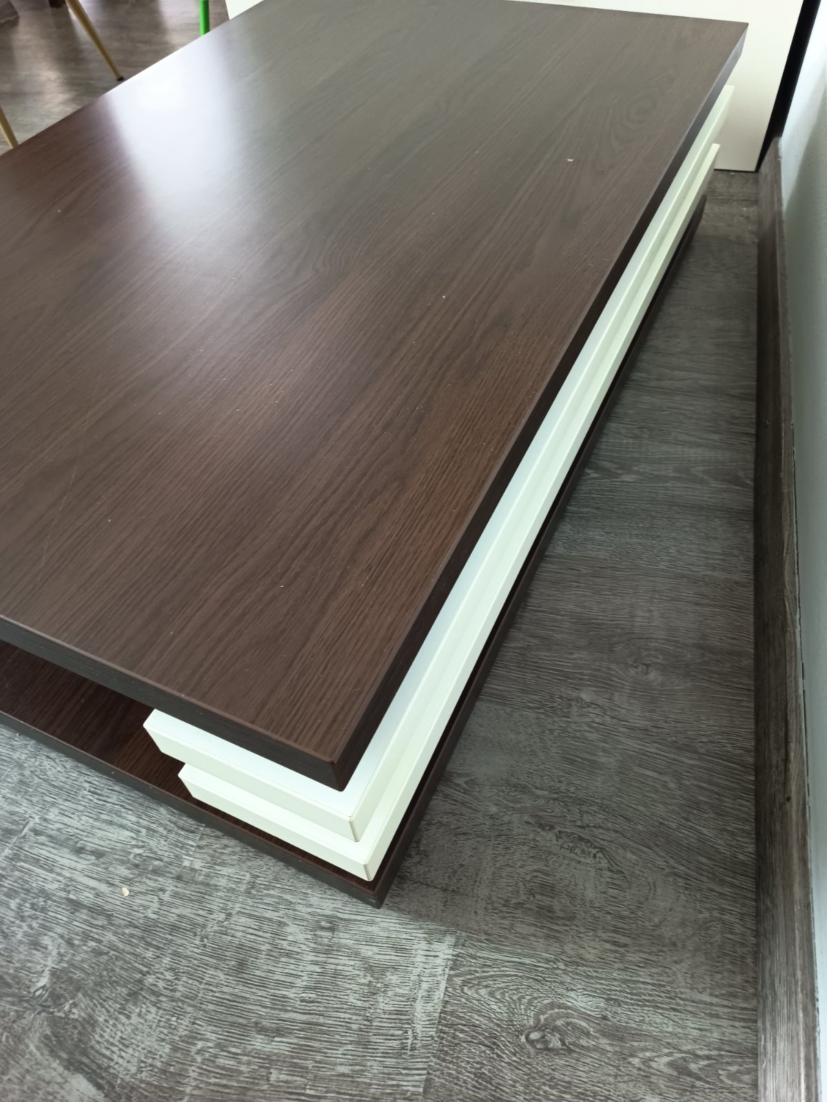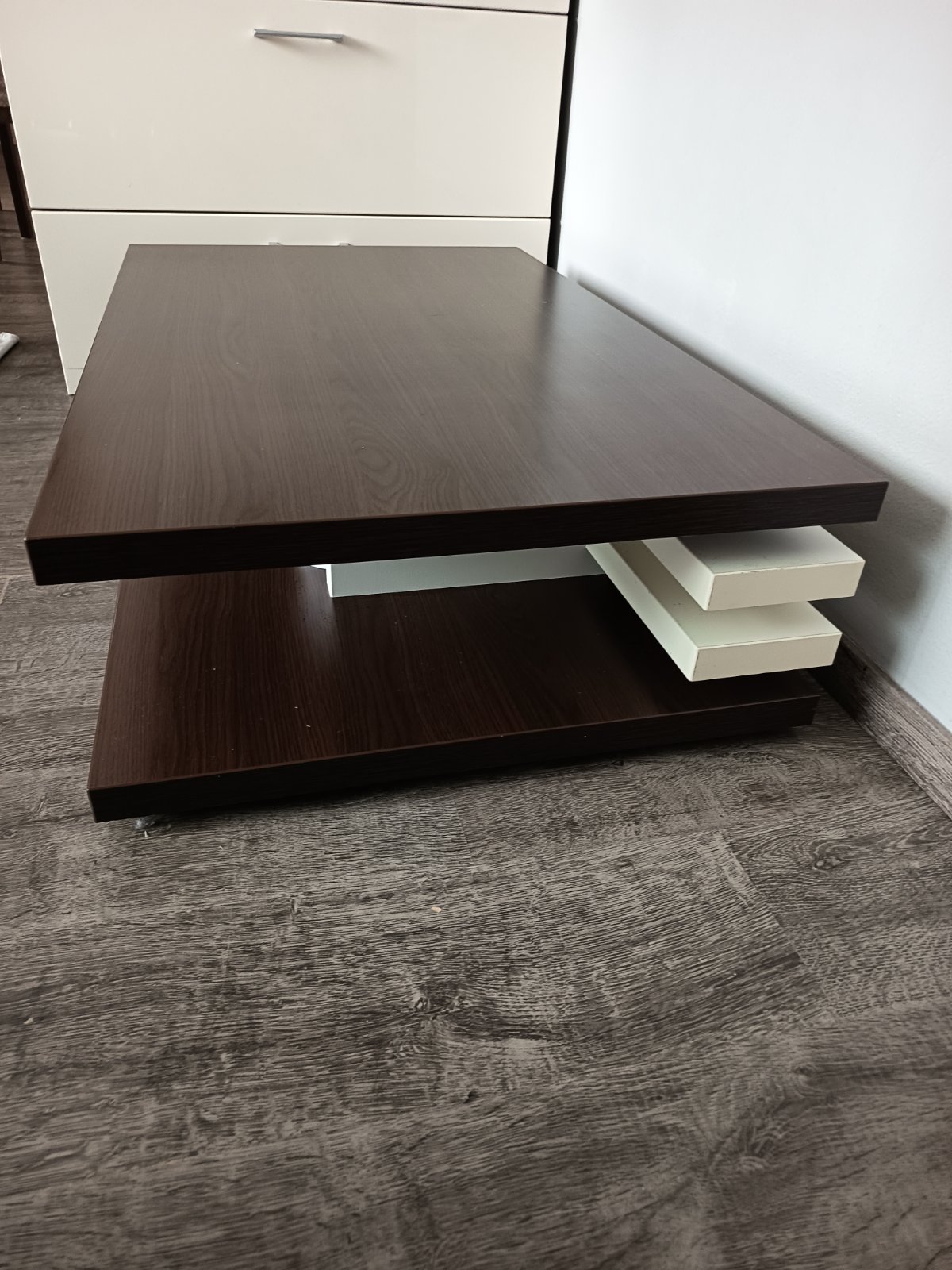 Predám konferenčný stolík...je pevný,stabilný,má jednu chybičku,je odrety na hornej doske(viď foto)...