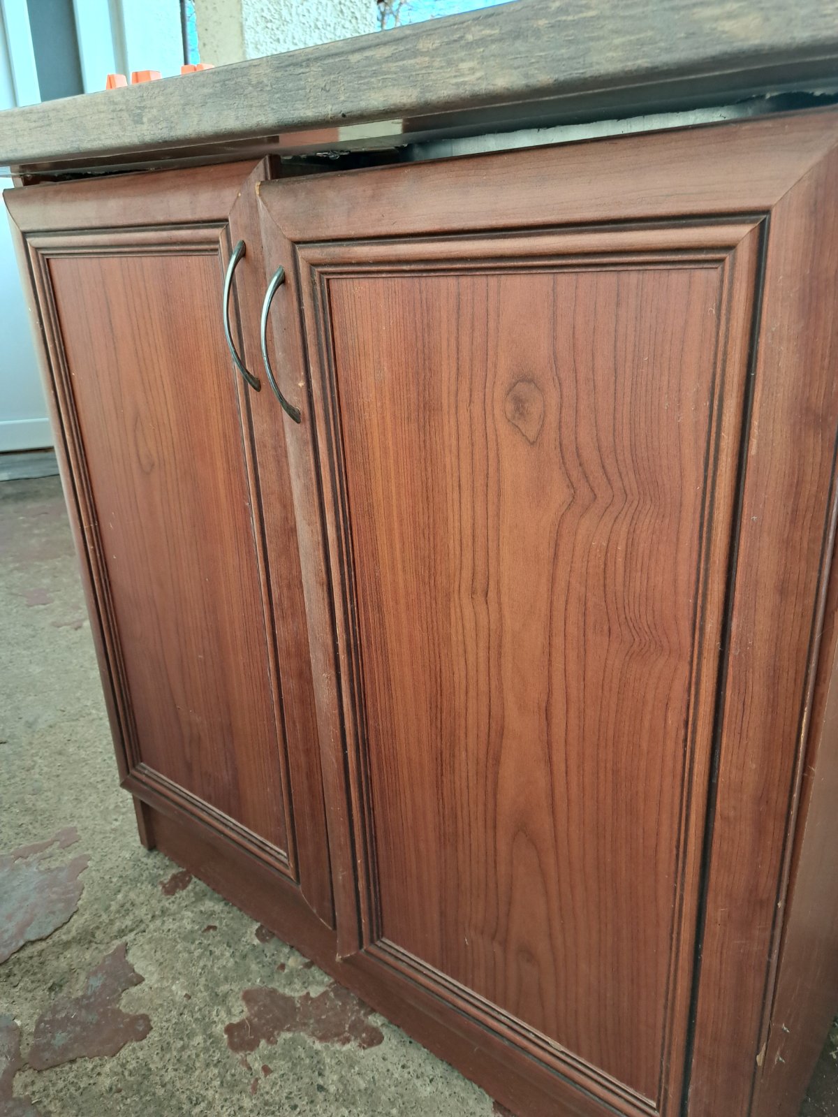 Predám používanú kuchynskú pracovnú dosku bez poškodení, rozmery sú na fotkách ( dĺžka = 155 cm, šírka = 60 cm ) s výrezom na drez a so zadnou lištou v tom istom prevedení. Dôvod: menili sme za no...
