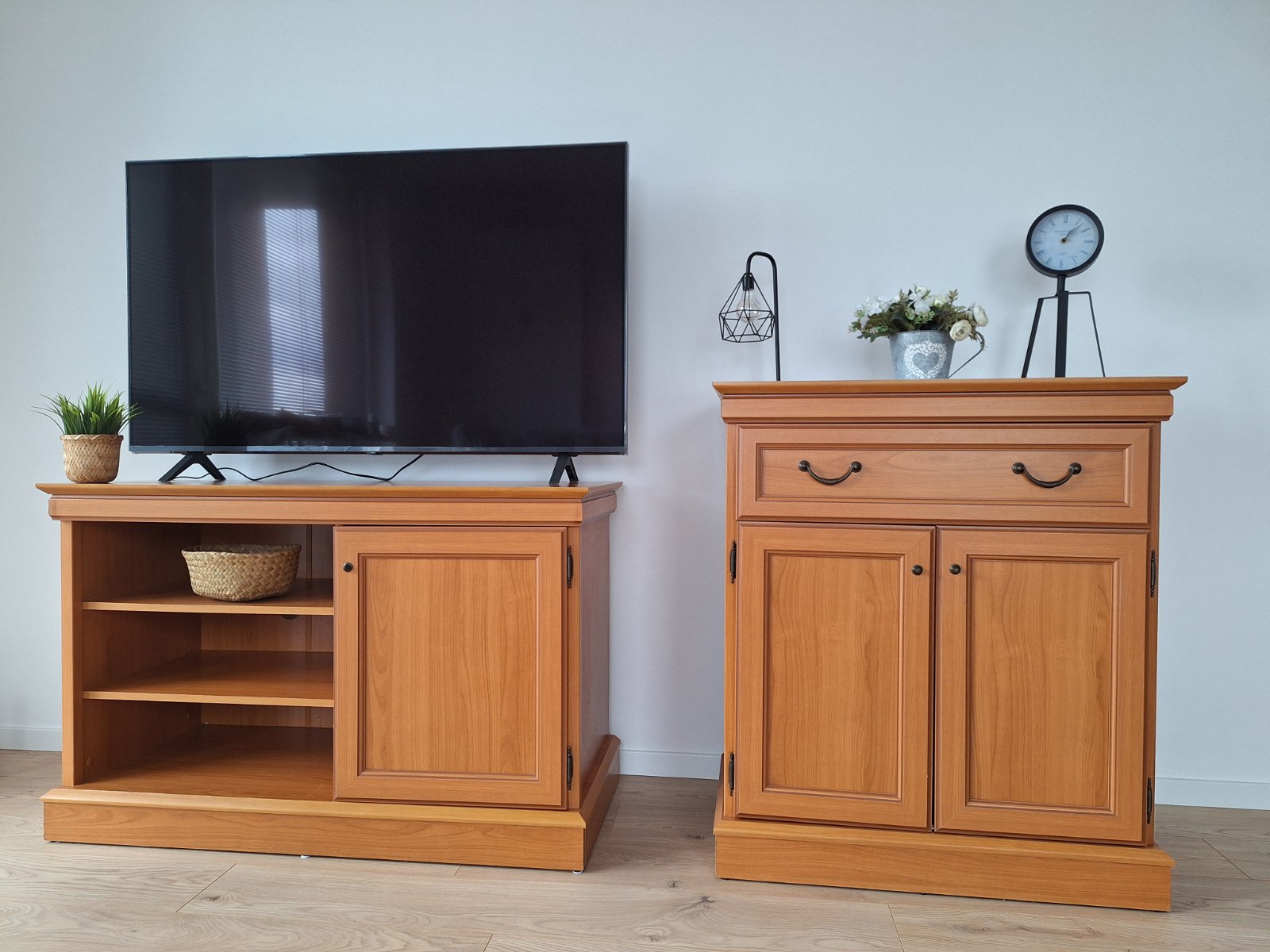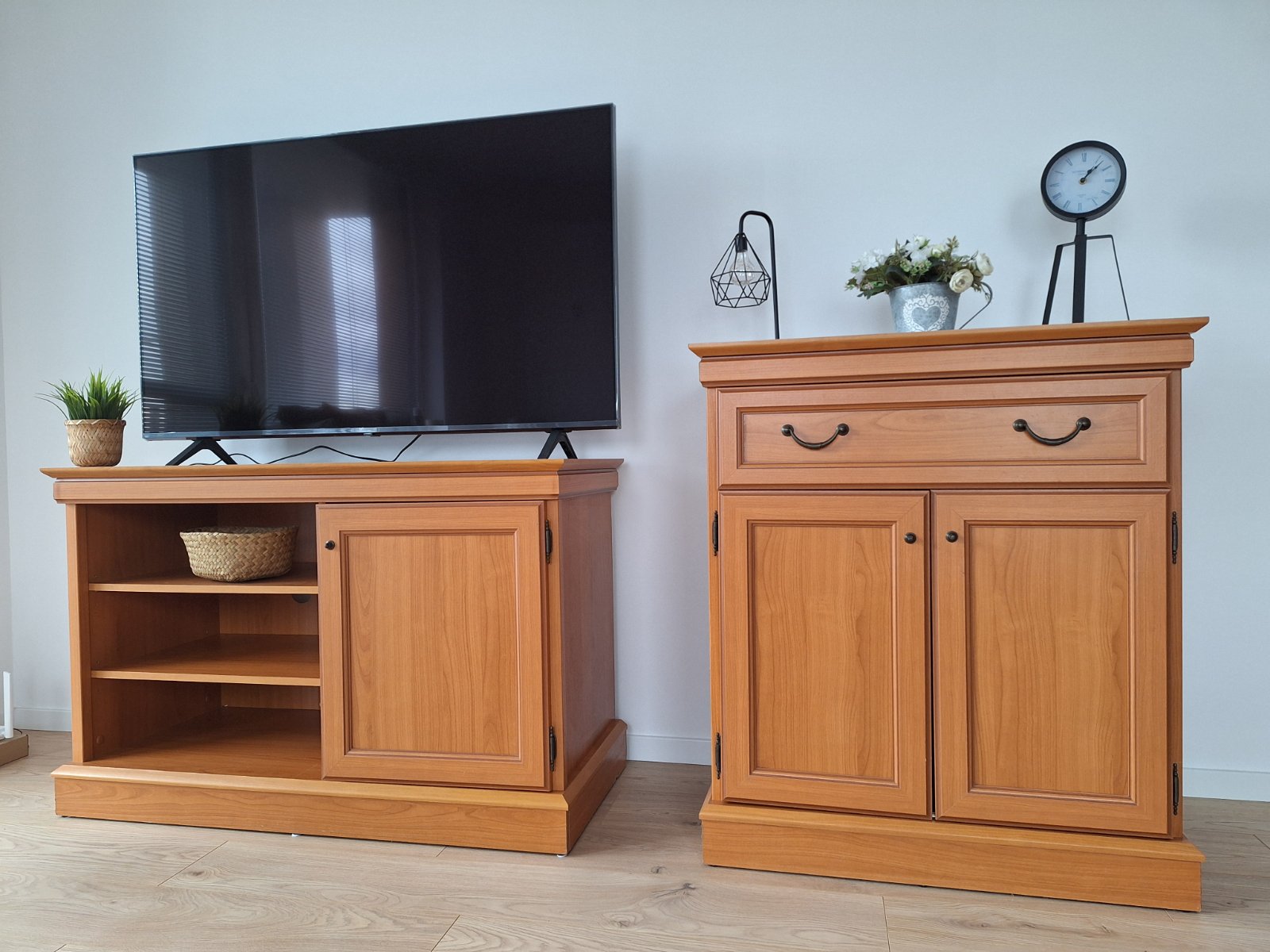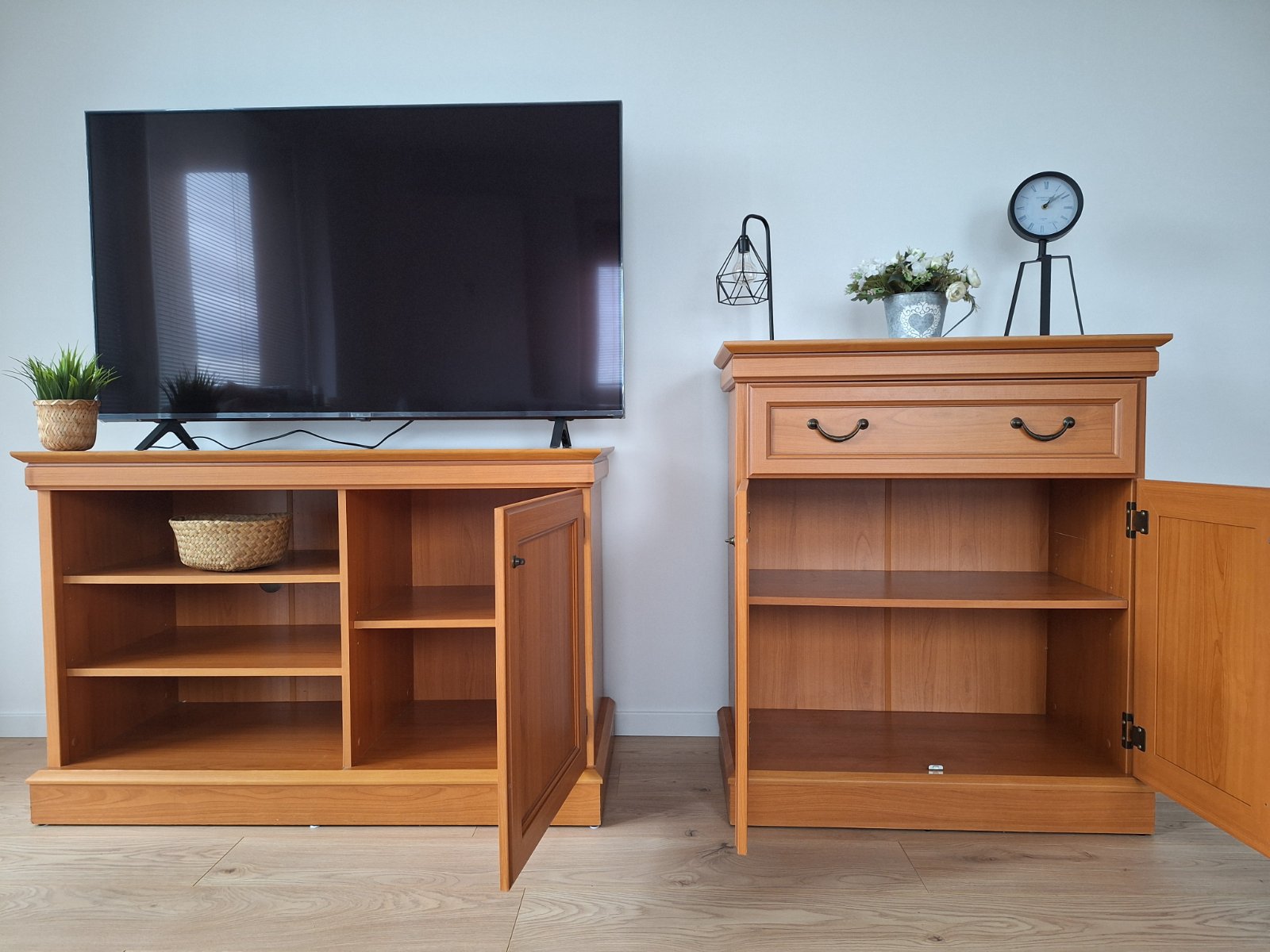 Hnedé komody 2ks, rozmery pod TV - V-75cm,Š-115 cm, H-50cm rozmery komoda so šuflíkom: V-93cm,Š-86 cm, H-42,5cm Viditeľné známky používania. Cena za kus 50€, v prípade záujmu o oba kusy 80€. Osobný odber Trnava