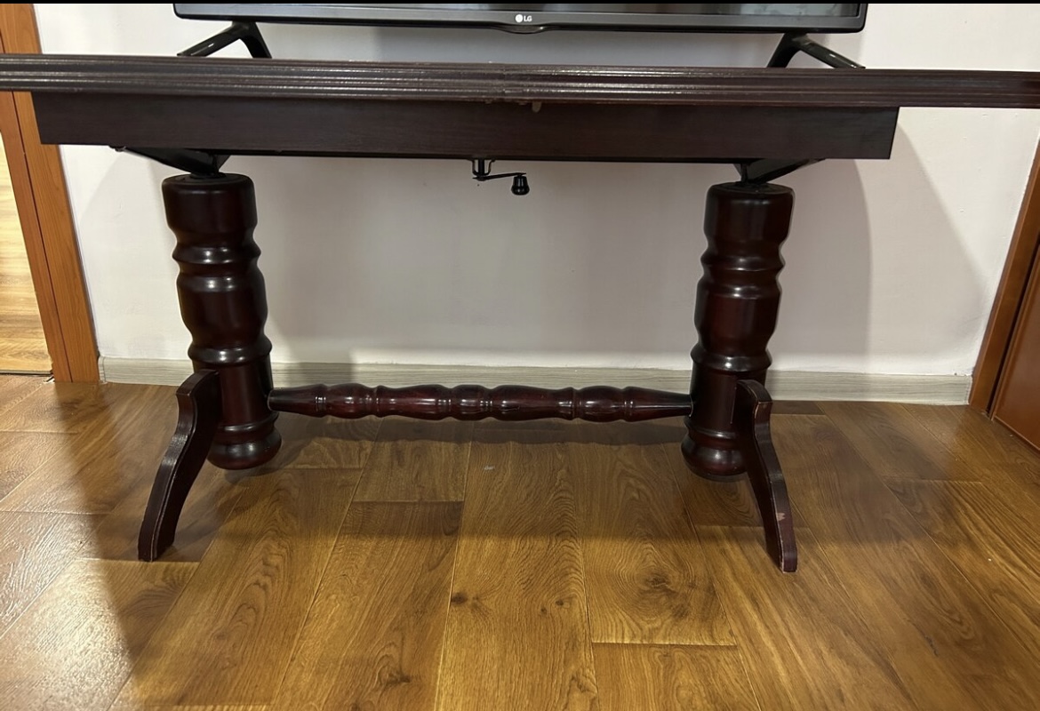 Rozkladací jedálenský stôl. Dá sa zdvihnúť a rozložiť z oboch strán.