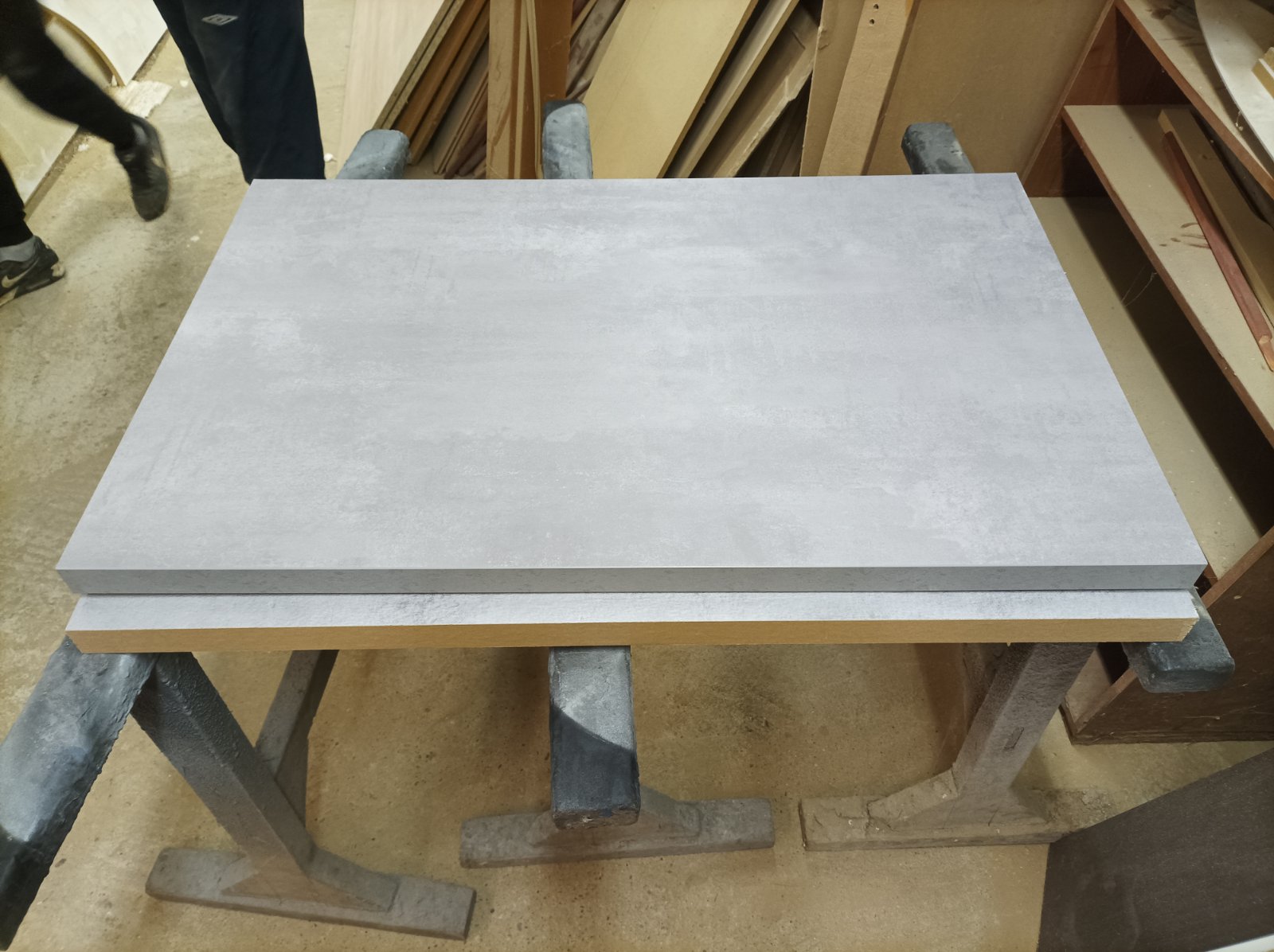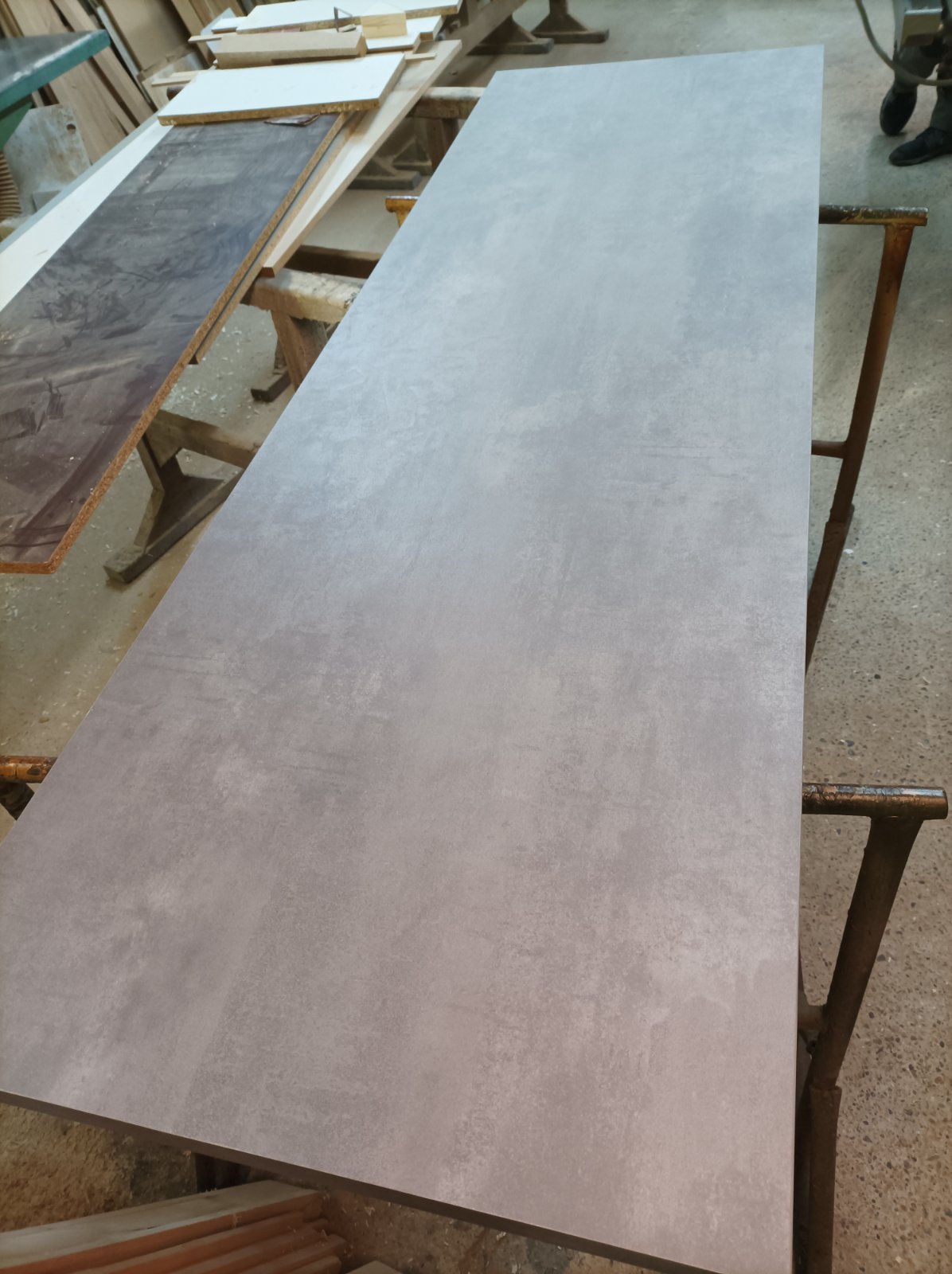 Mám na predaj narezany barový pult ktorý pozostáva z jednej dlhej dosky a dvoch bočných ako nohy stola. Fotky sú z dielne kde sa narezaval. Viac materialu z tej farby nemám.Bol to navrch na ukončenie kuchynskej linky ktorý sa nakoniec neuskutočnil. Rozhodlo sa o inom zložení kuchyne ako bolo v pláne tak nám je tento pult nanič. Farba je sivá vzor beton . Len osobný odber v Hlohovci.