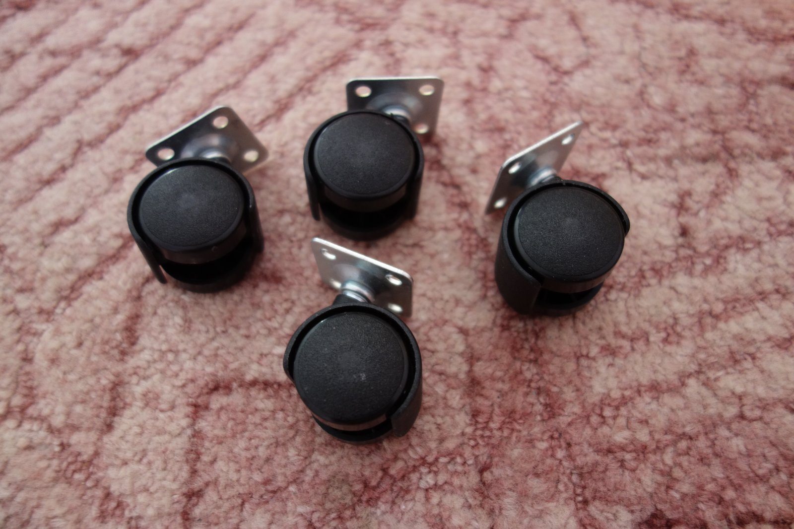 Predám nábytkové kolieska plastové, 4 ks. Hodia sa na detskú postieľku alebo aj na iný menší nábytok. Sú nové, nikdy nepoužívané. Cena spolu.