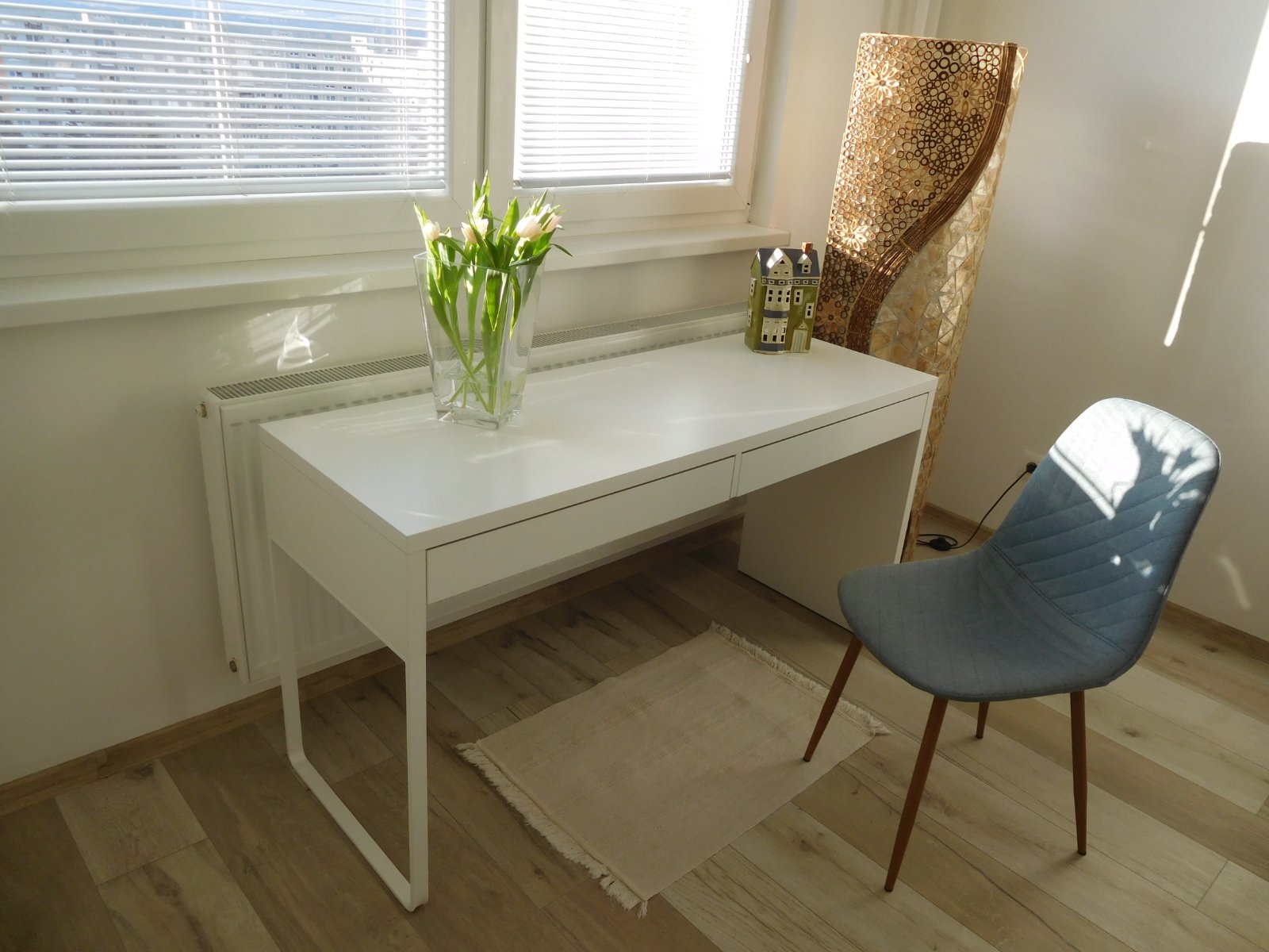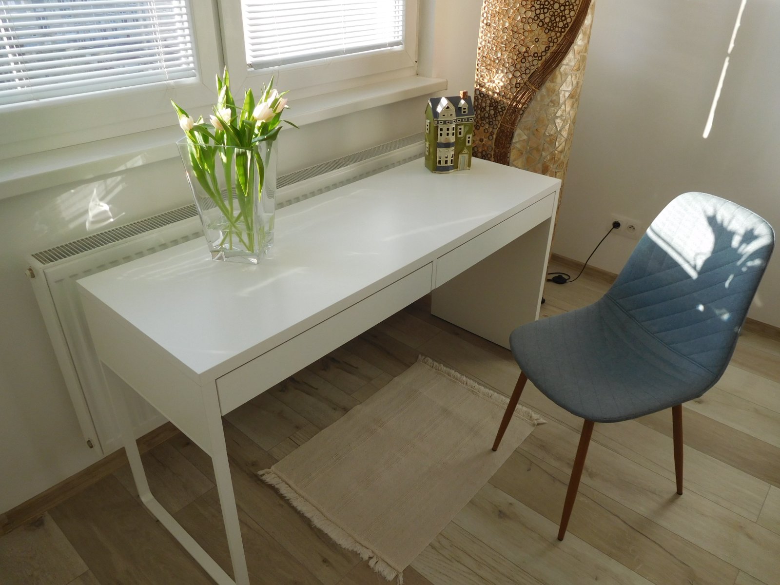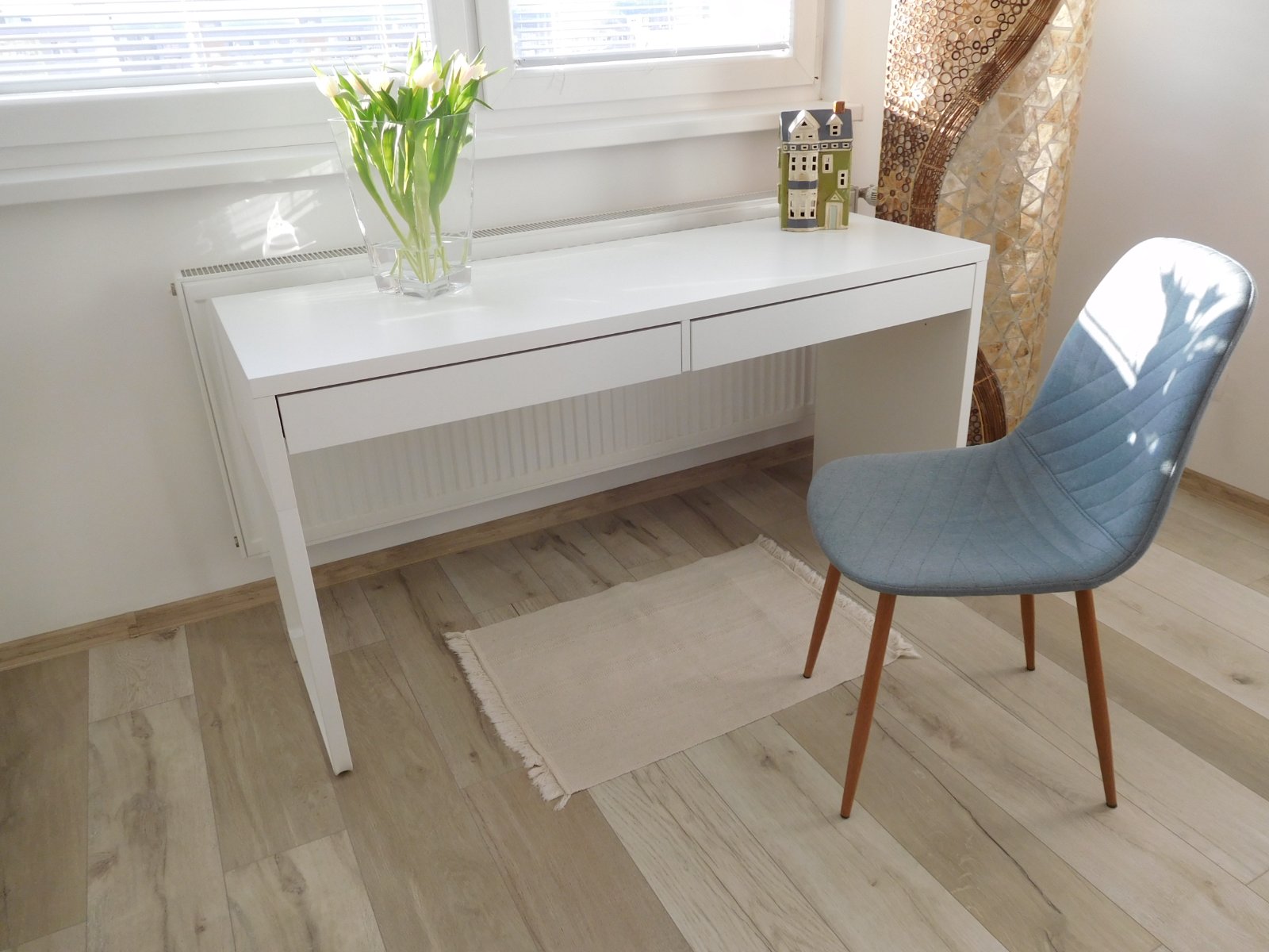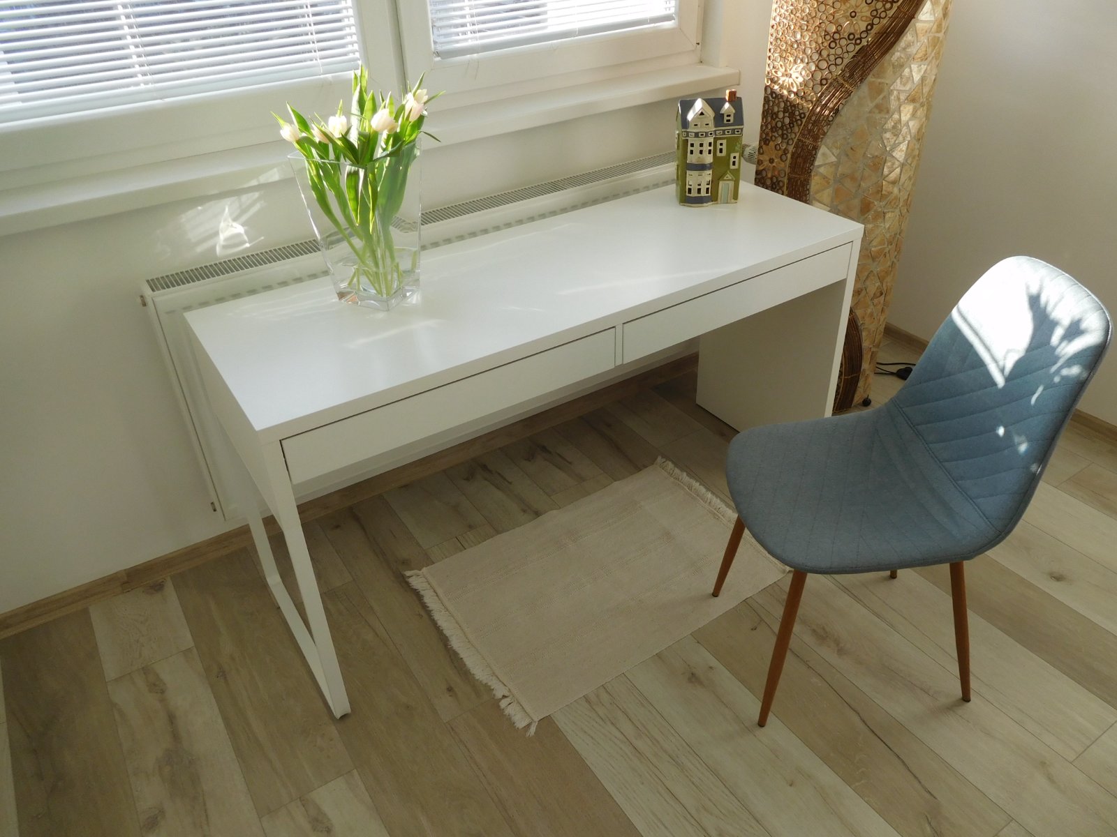 Stol písací biely 142 x 50 cm + stolička pevná,