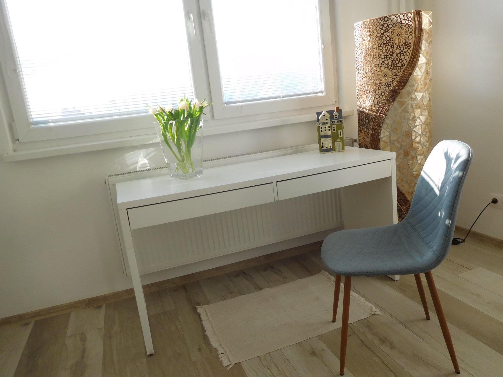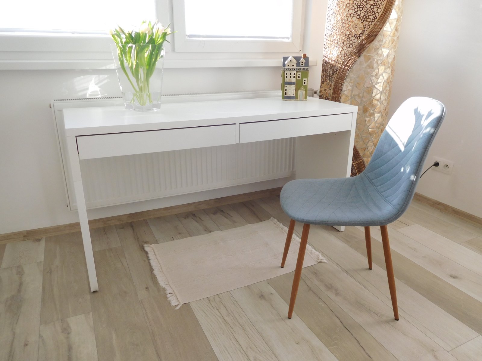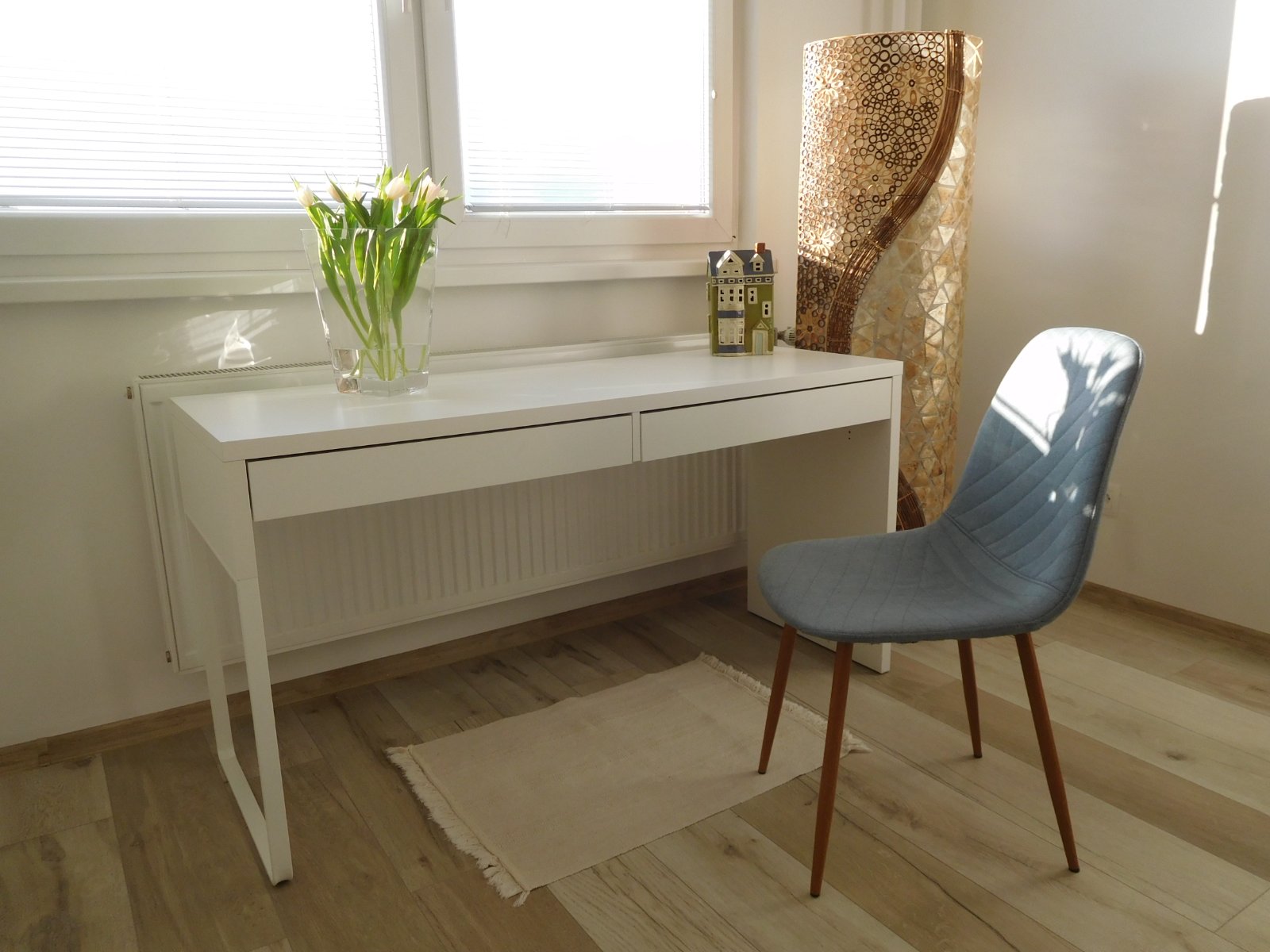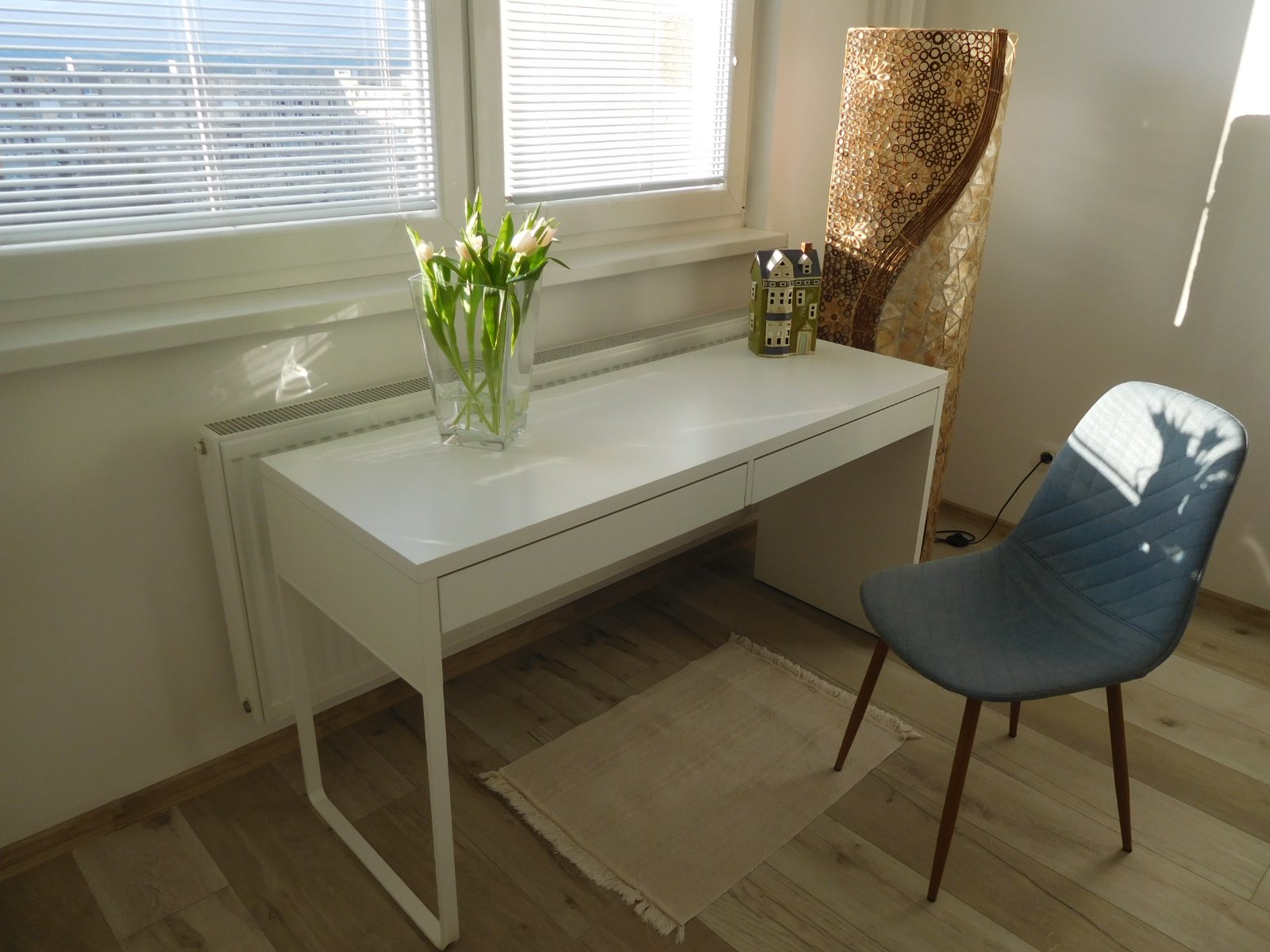 Stol písací biely 142 x 50 cm + stolička pevná,