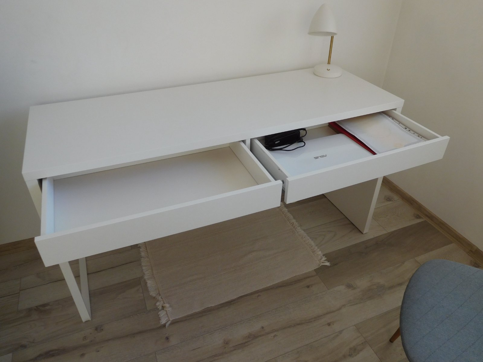 Ponúkam na predaj písací stol o rozmere 142 x 50 cm, výška pracovnej plochy 75 cm, stolík má 2 x šuplík,