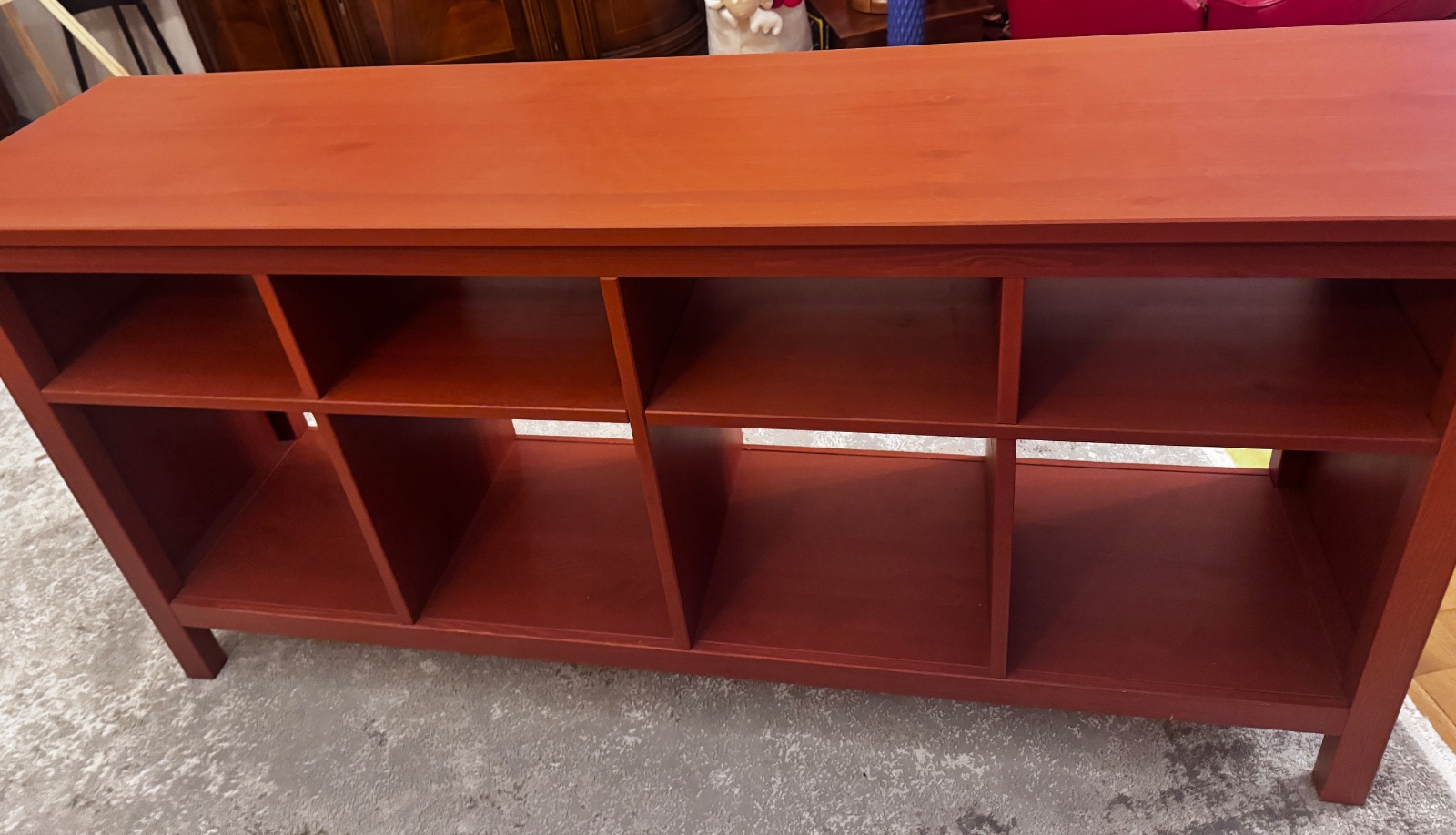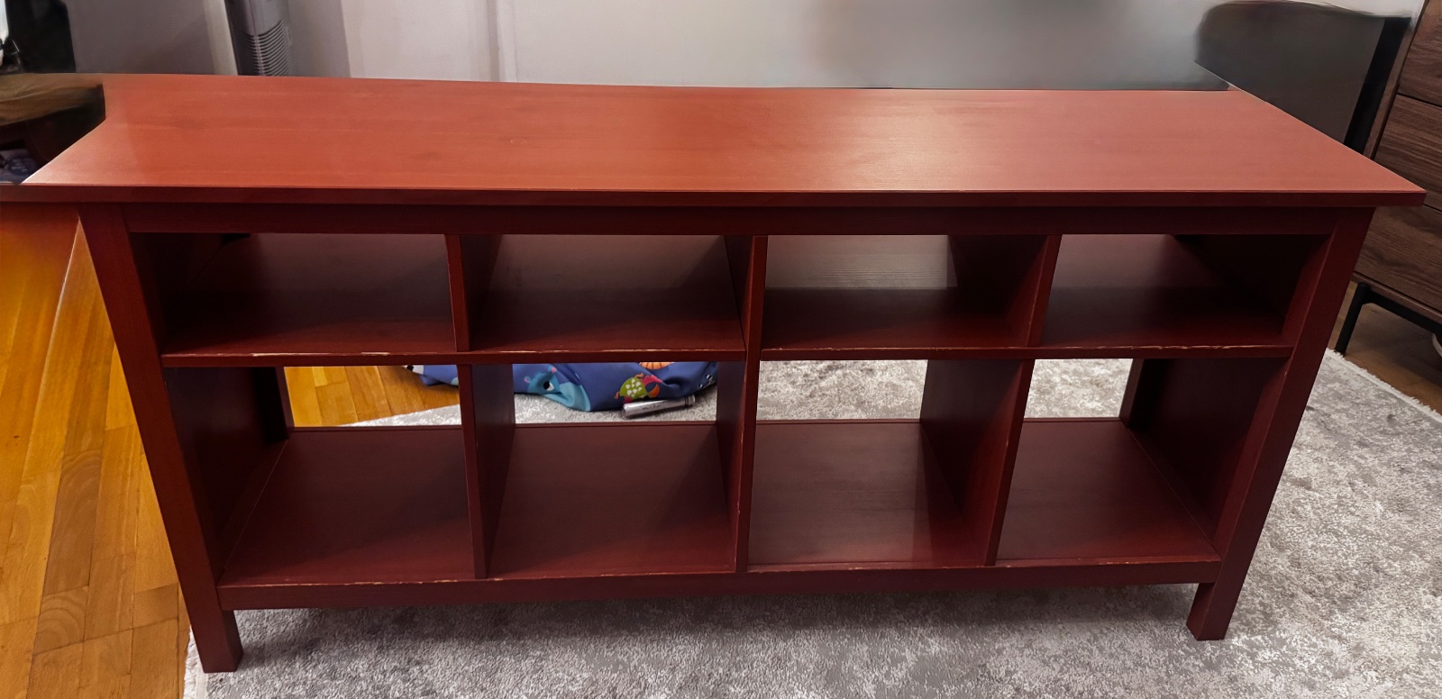 Stav pouzivany, na jednej strane vidiet opotrebenie na polickach - na kraji je osuchane, mali sme tam krabice. Z druhej strany (rovnaka) nic nie je poskodene .. doporucujem dat k stene s tou poskodenou a z predu je aako nova(vid fotka) alebo vhodne na zbrusenie a premalovanie