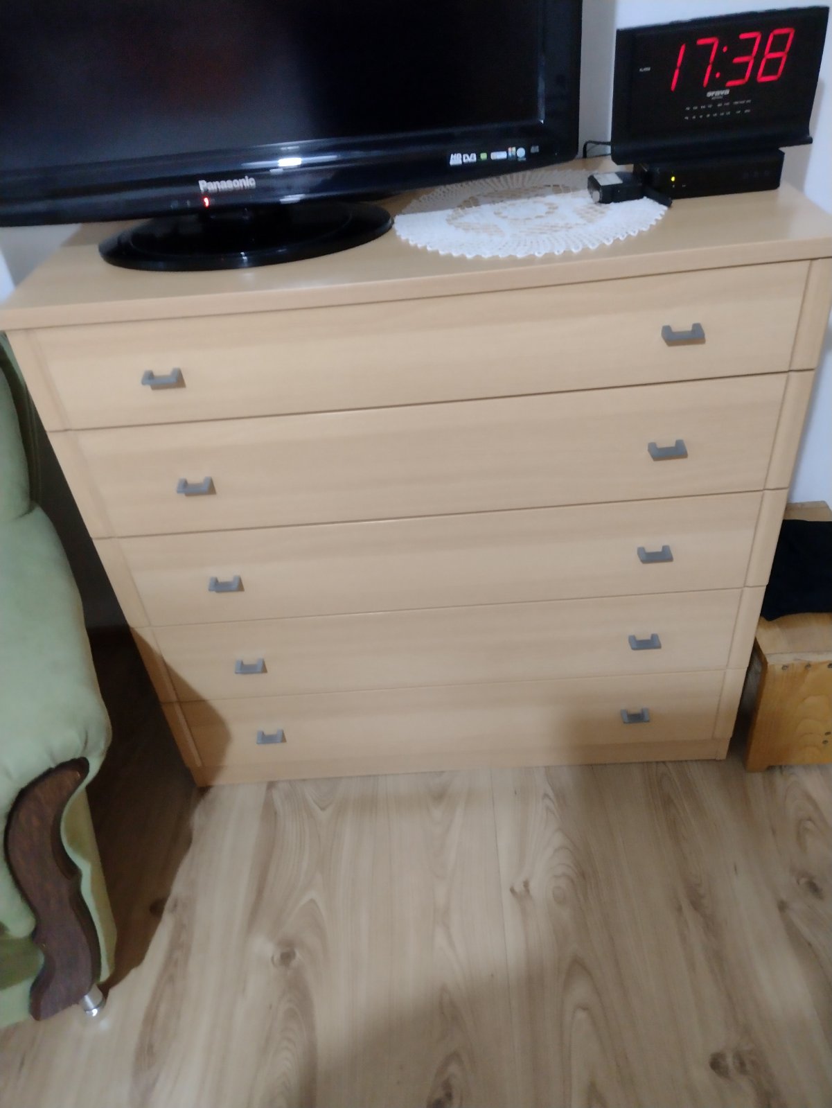 Predám komodu do spálne ako novú za 75 e manzelsku posteľ rošty madrace a nočné stolíky za 550 e ako nova deti nemam