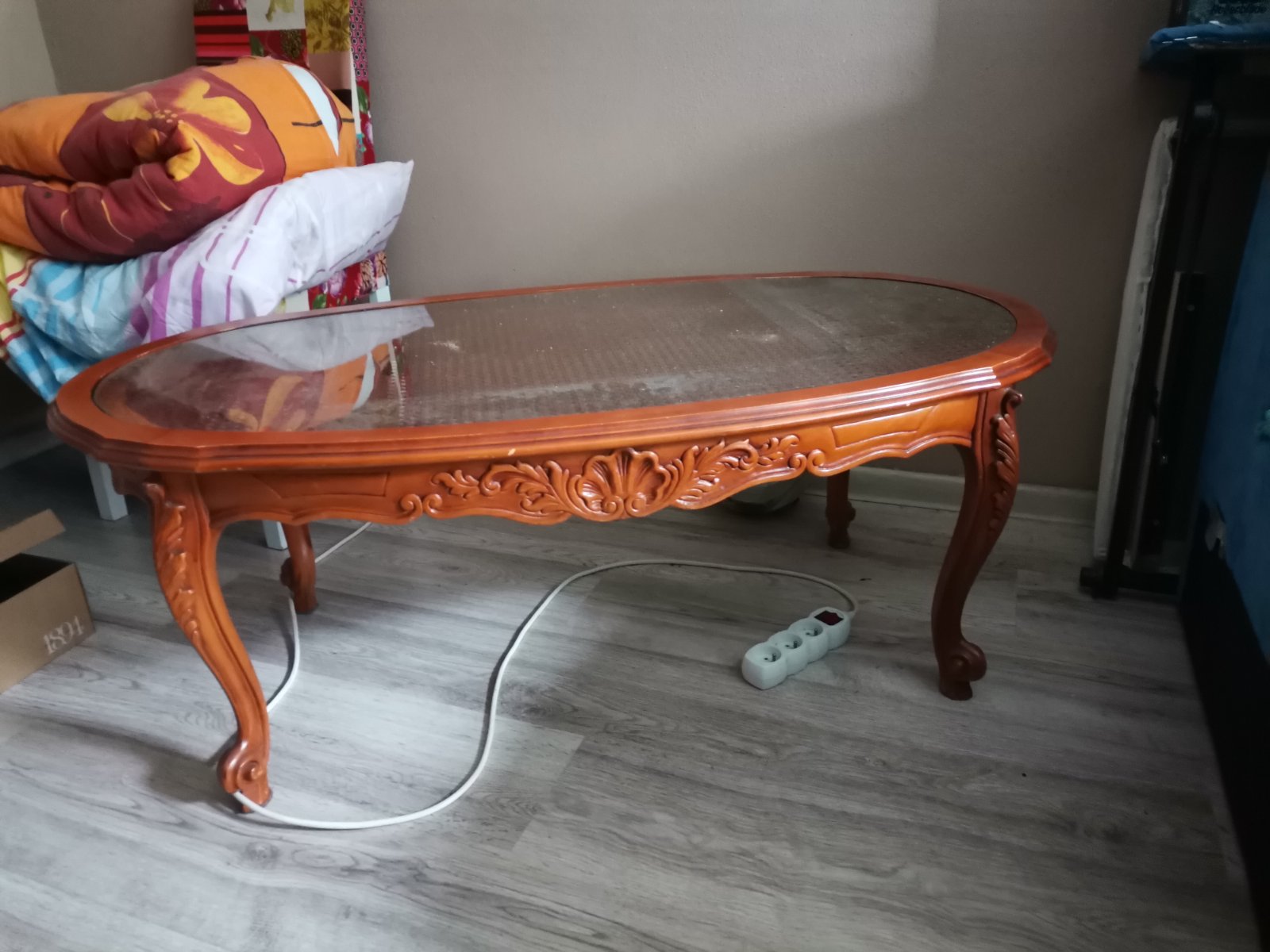 Predám používaný konferenčný stolík. Známky používania sú na foto. Nebránia používaniu. Boli na ňom nalepené ochrany rohov. 2 tam ešte sú nalepené. Najlepšie osobný odber v Prešove a okolí.