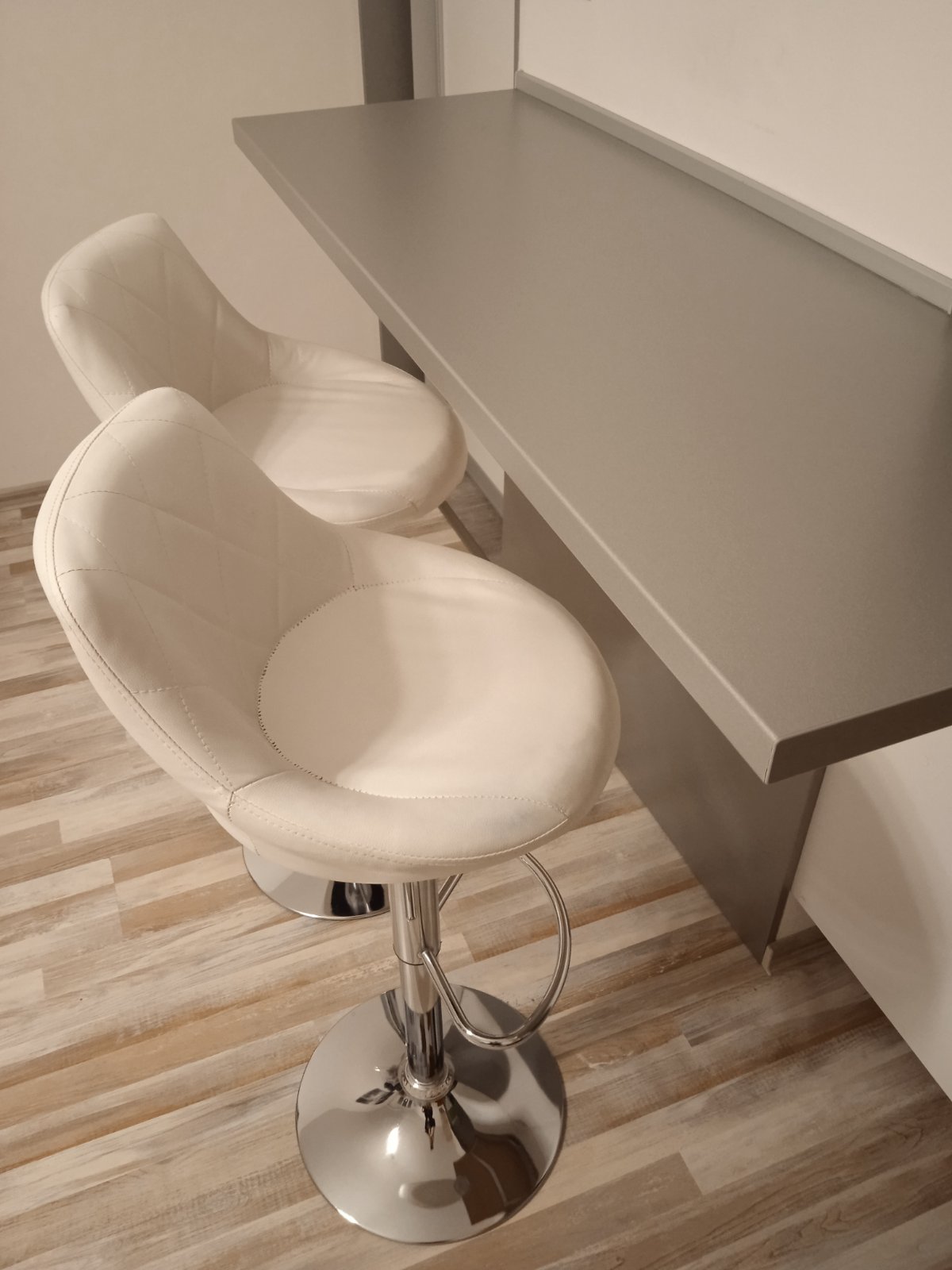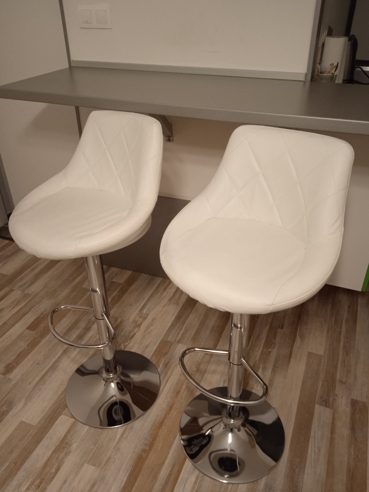 Predám 2 kožené barové stoličky, kupované pred 2 rokmi. Majú známky používania, ale sú plne funkčné a výškovo nastaviteľné. Cena 30 eur. Iba osobný odber v Bratislave.