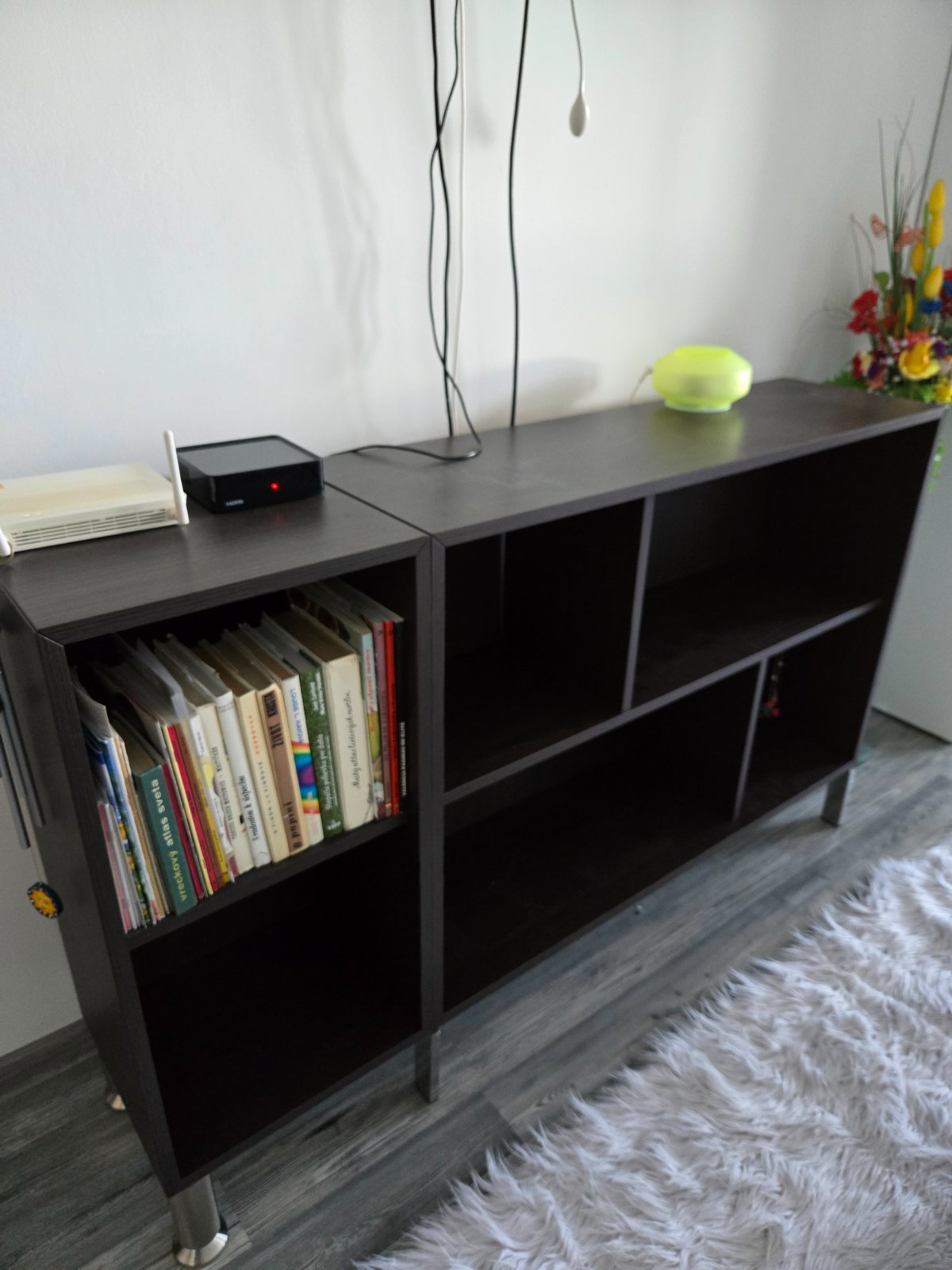 Predám tieto dve spojené poličky. Dĺžka 100+35cm, výška s nohou (podstavcom) 83cm, bez podstavca 68,5cm. Hĺbka 30cm.