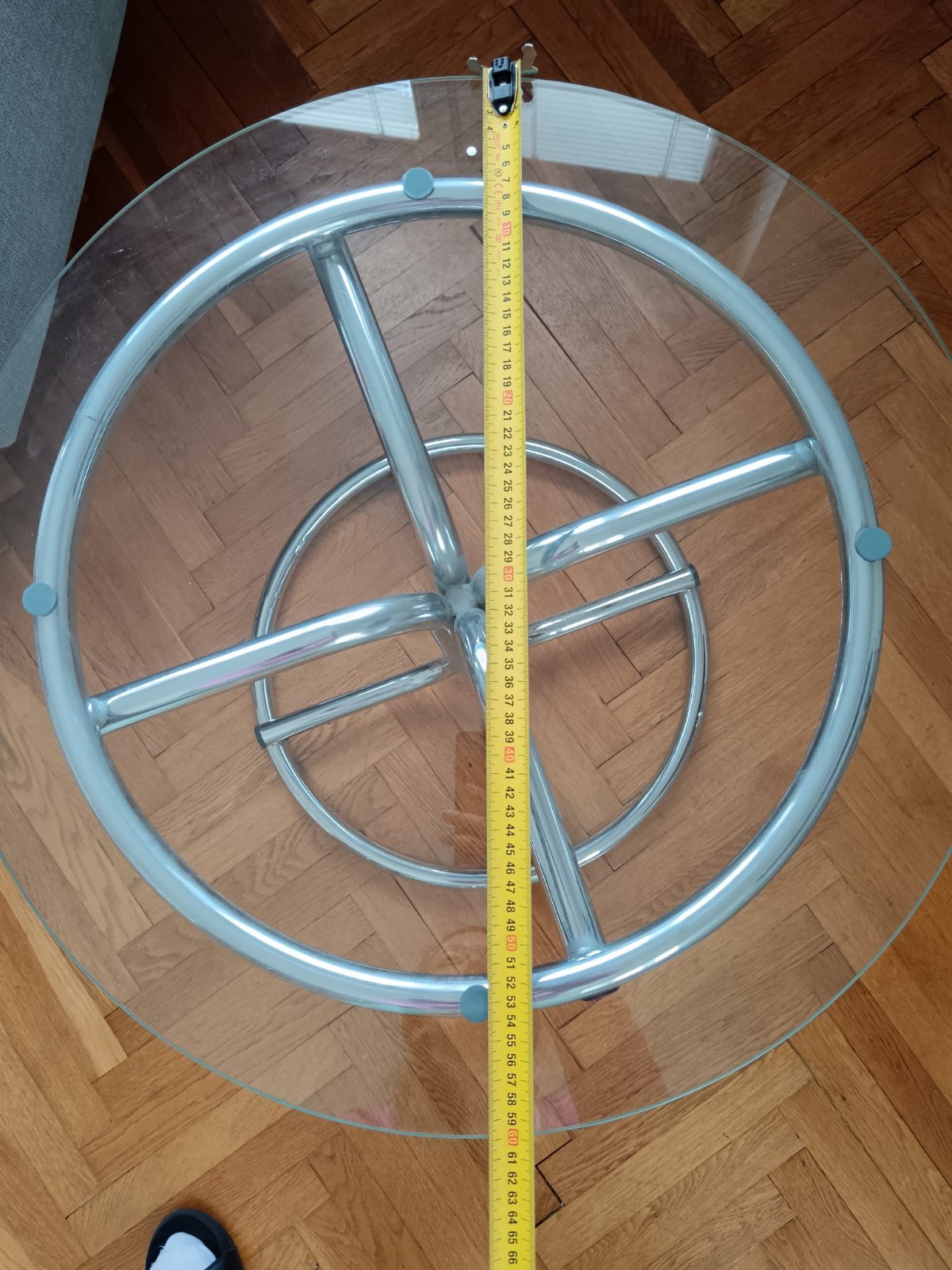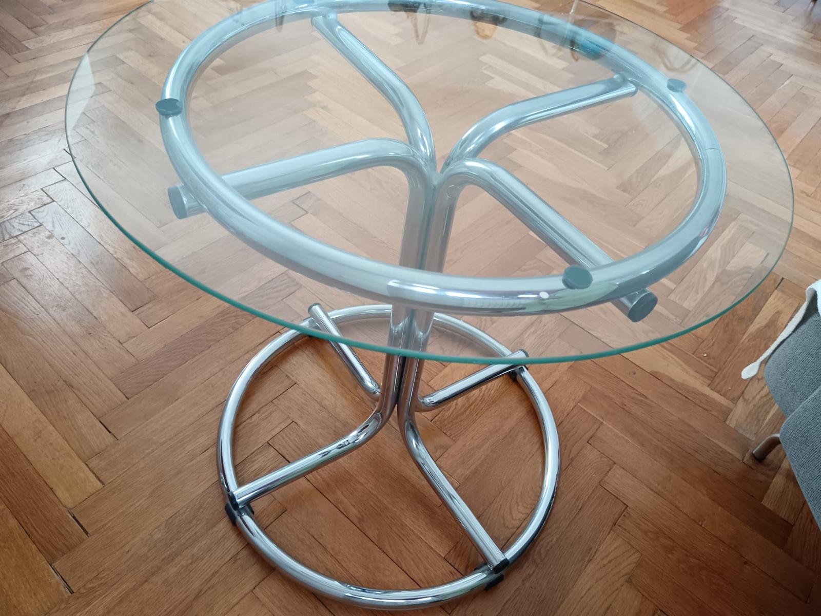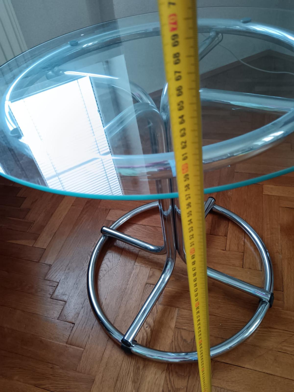 Predám sklenený kaviarenský/príručný stolík, bez poškodení, rozmery: výška 57 cm, priemer 60 cm