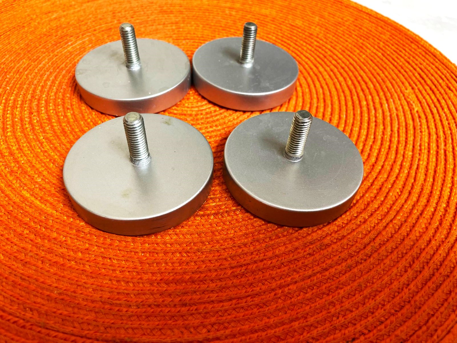kvalitné nastaviteľné koncovky so skrutkou,ktorá sa navrta buď na nohy stola,komodu,skrinku - aby sa ľahko posúvala,farba matný chróm,priemer = 6,5 cm,cena je za 4 ks
