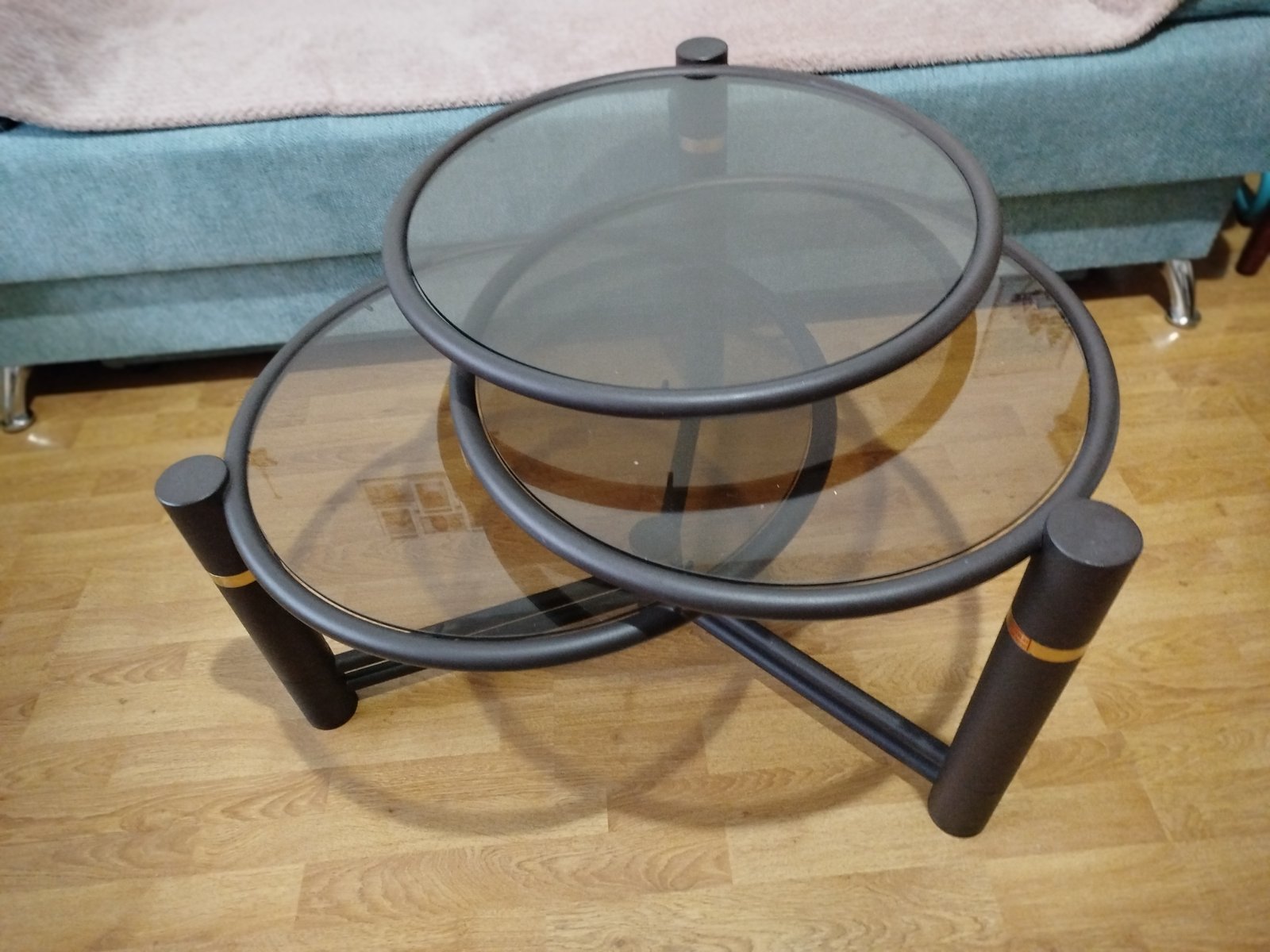 Kovové nohy stola plus tri okrúhle sklenené tabule polohovateľné