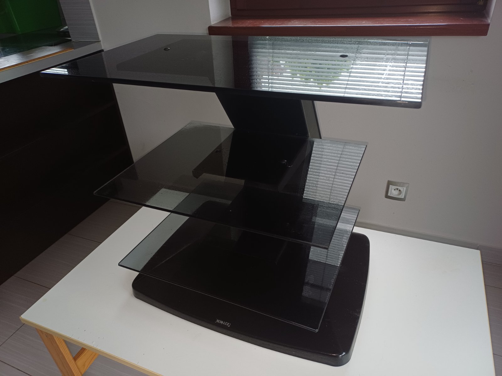 TV stolík , používaný, ale top stav, bez poškodenia, kov a sklo, je pevný a stabilný, udrží aj ťažký televízor, len osobný odber Nitra.