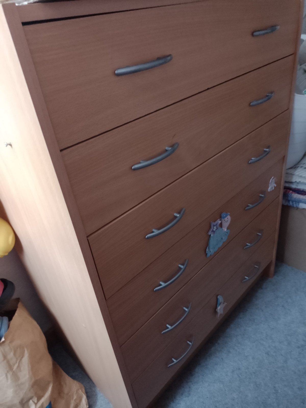 Komoda alebo bieliznik, po prerabke izby nevyužitá. Momentálne zapratana v šatníku. 74 x99 cm, hlbka 40cm. Môže ešte poslúžiť do detskej izby, garáže, špajze. V zachovalom stave.