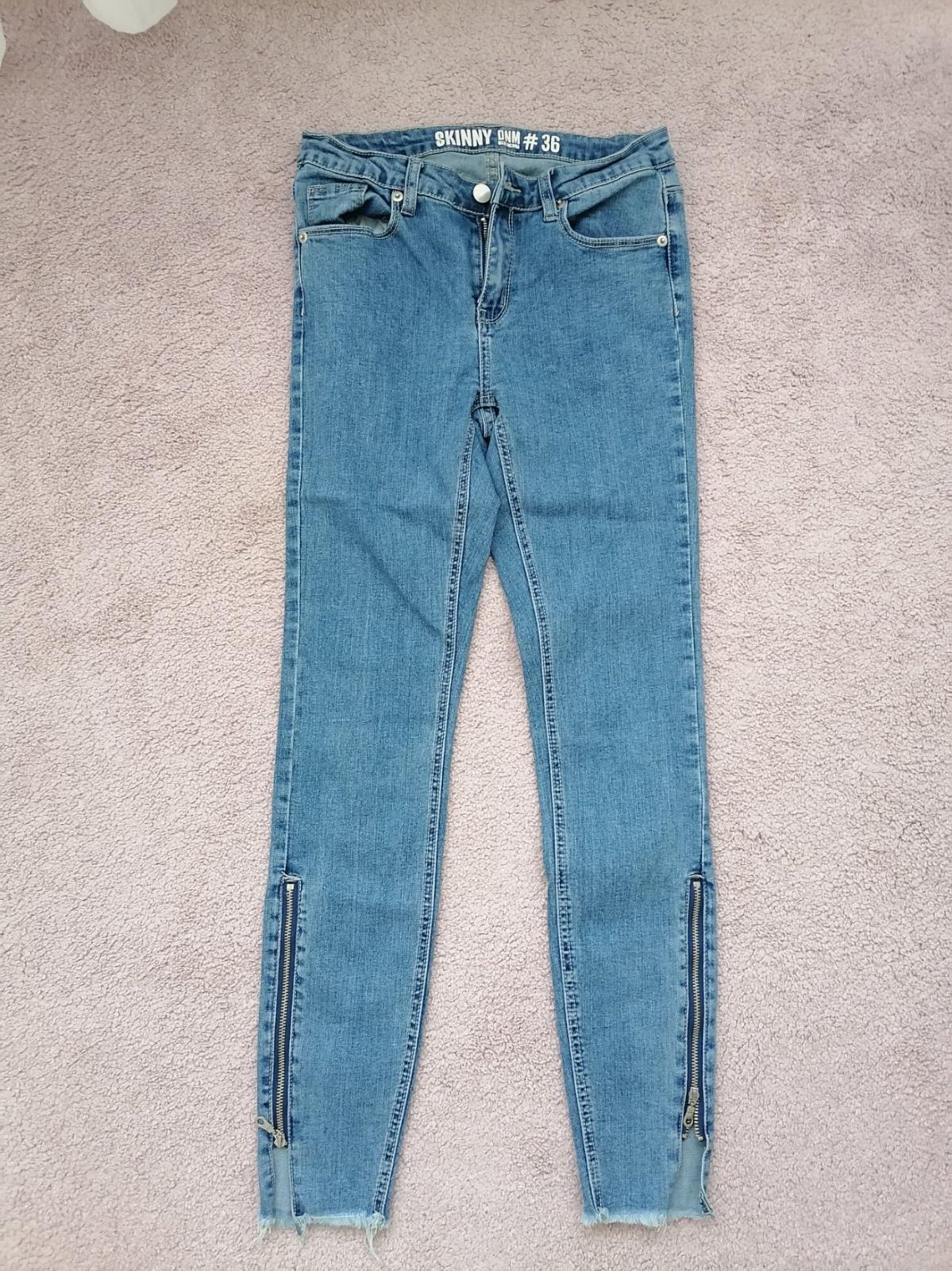 Bez poskodeni, vyšší pás Dlzka od pasu 98cm, obvod pasu max 76cm, obvod nohavice v celej dlzke rovnaky 50 cm.