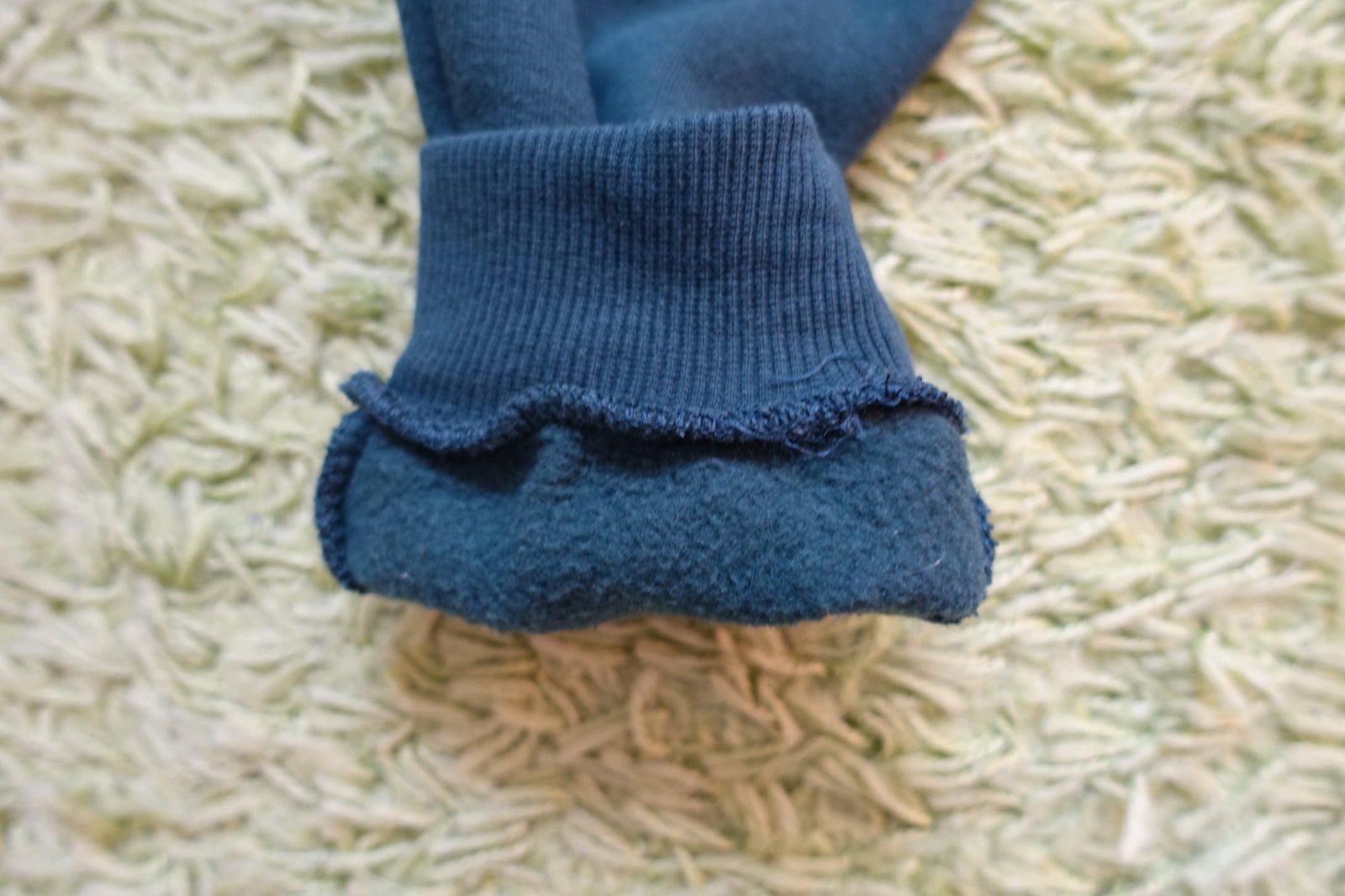 Celková dĺžka tmavo modrých tepláčikov je 56 cm a šírka pásu v kľude je 23 cm.