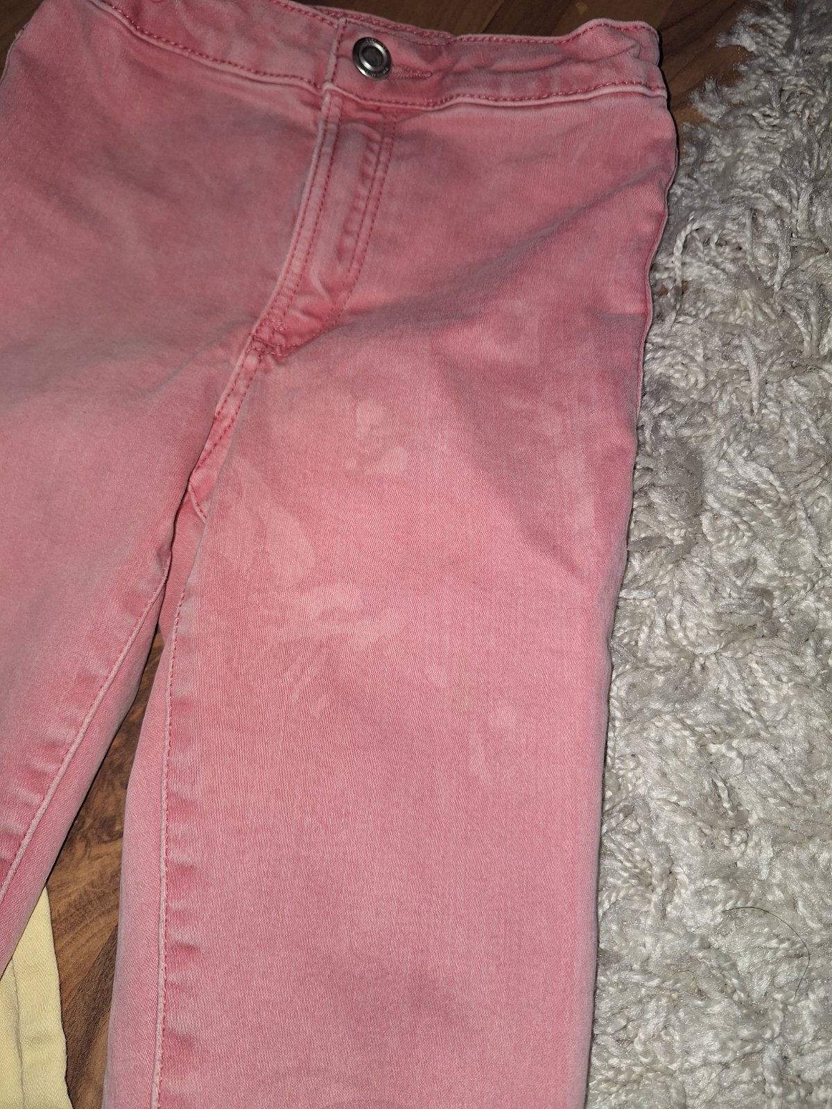 Na ružových fliacky z prania. Ale nie je pri nosení vidieť (vid foto) keď je troska dlhšie tričko.
