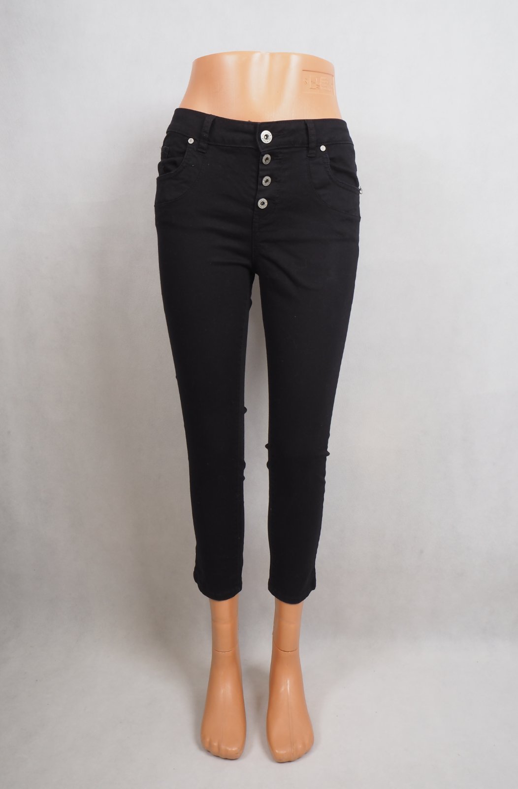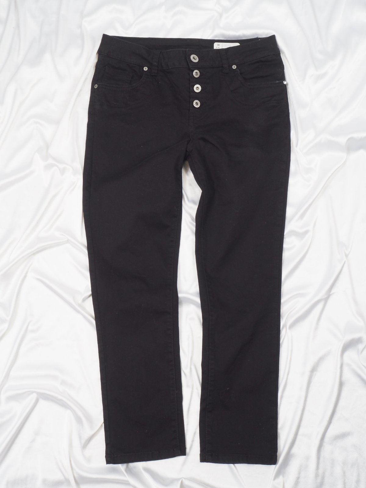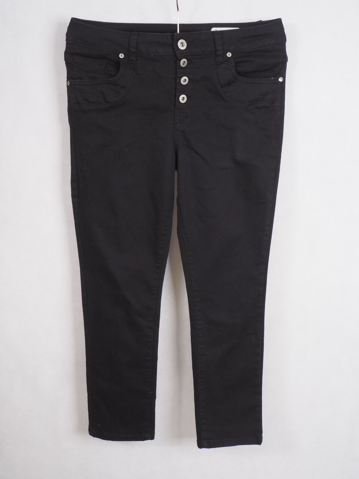 Kvalitné čierne rifle so zapínaním na gombíky, materiál 97% bavlna, 3% elastan, super stav.