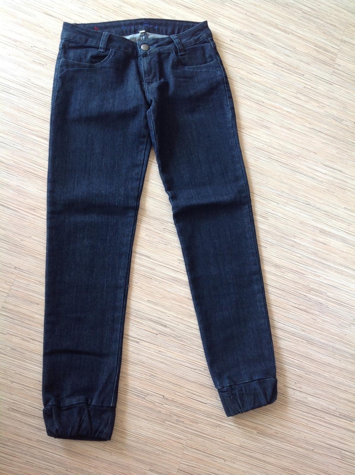 Velmi pekne elasticke tmavomodre rifle v top stave,spodok nohavice guma,velkost 27